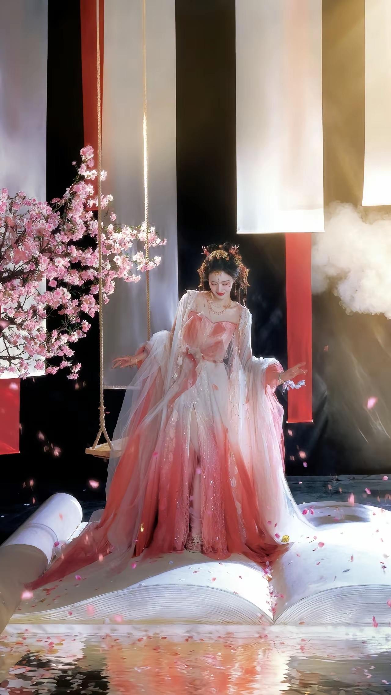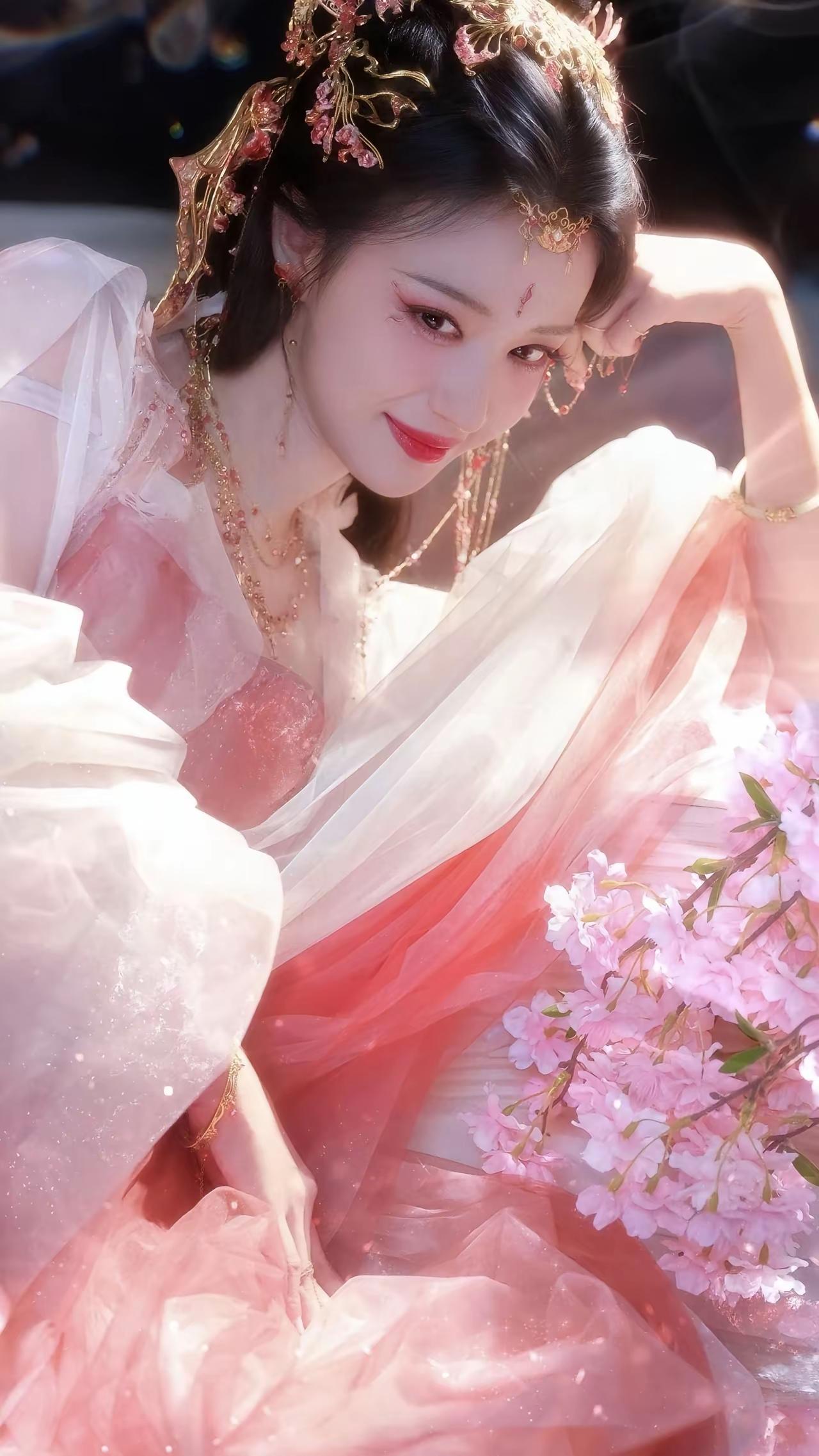 王楚然,金饰缀云鬓,粉纱笼清辉。 一颦一笑皆是风月,一抬眼便撞碎了满庭春光,把东