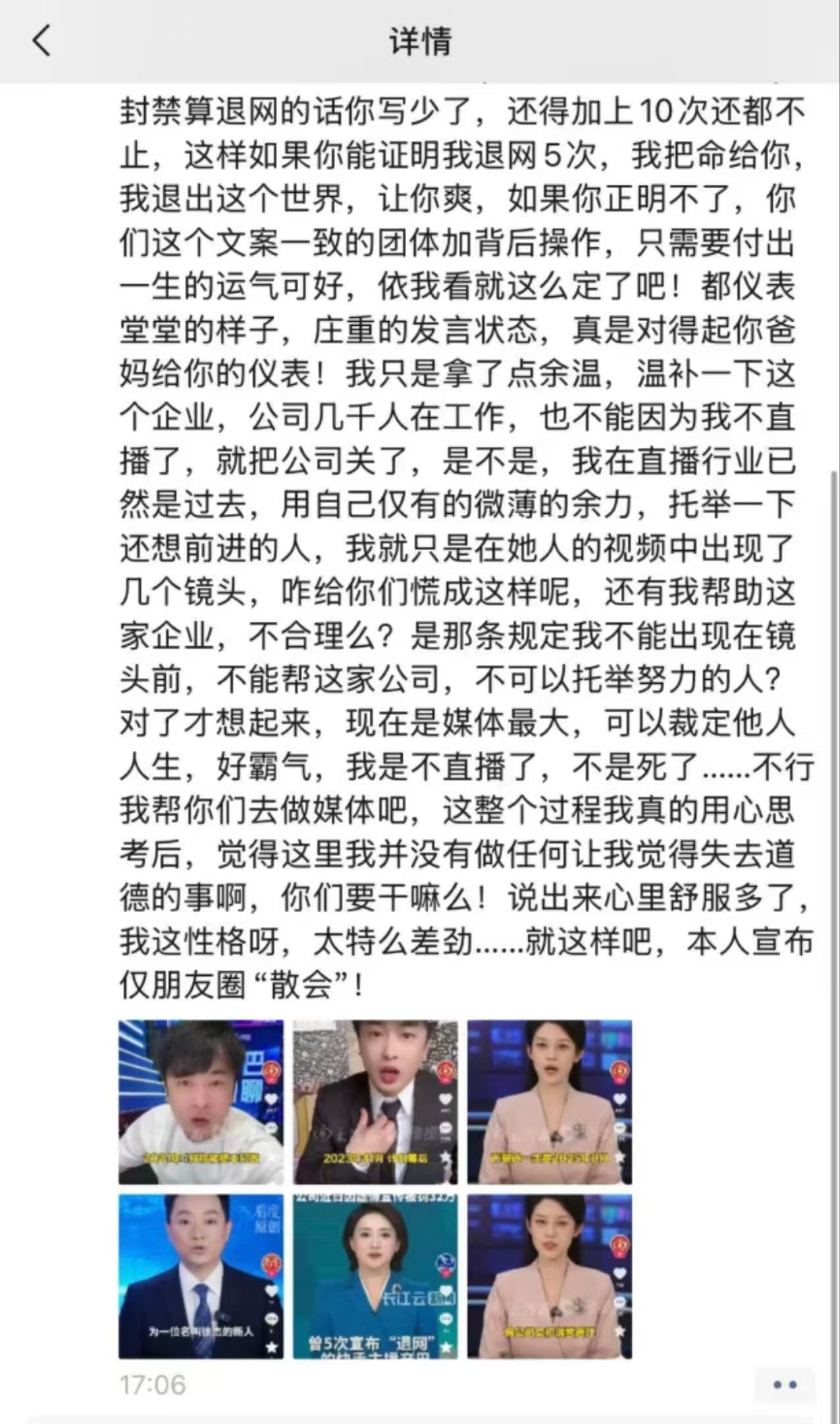 辛巴朋友圈吐槽被五次退网辛有志否认了五次退网的说法。他表示自己只是退居幕后,这次也不是“高调回归”,用自己微薄的余力,托举下还在前进的人,自己也只是在她人镜头中出现了几个镜头。