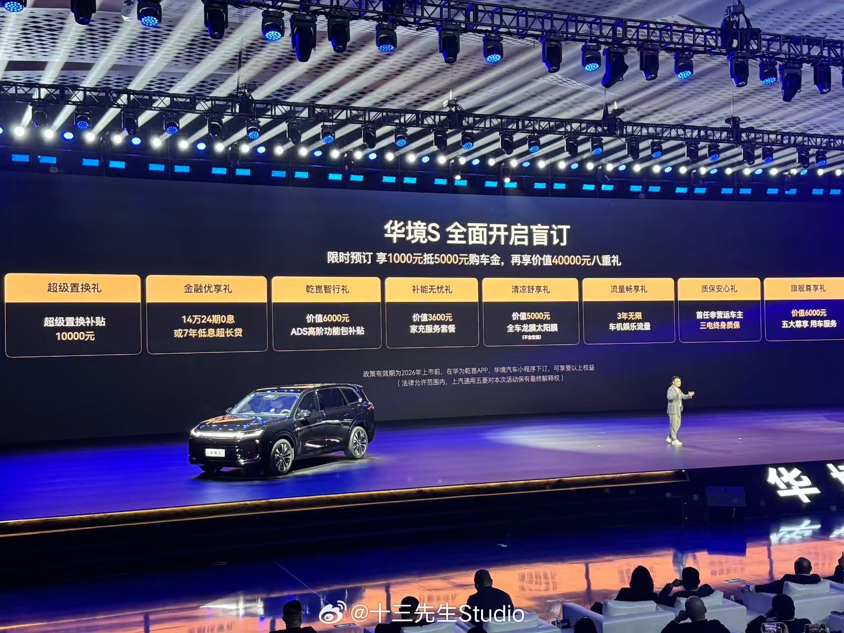 华境S正式开启盲订,上市前下订,有1000元抵5000元购车金,相当于优惠4000,以及10000元置换补贴、24期0息、6000元ADS高阶功能包补贴等权益。全系标配华为乾崑智能解决方案,涵盖华为乾崑智驾ADS Pro增强版、鸿蒙座舱HarmonySpace 5、乾崑车云HUAWEI iVCS。搭载华为乾崑首创舱内激光视觉Limera,提升小目标障碍物检出能力。支持城区领航辅助,高速领航辅助、泊车功能,园区领航辅助功能预计将在下半年开放。鸿蒙座舱支持多设备无缝互联。乾崑车云配备星闪数字钥匙、哨兵模式等。搭载行业最新一代中央集成式电子电气架构EEA4.0,实现毫秒级响应与无感OTA升级。主被动安全,全系标配华为乾崑全维防碰撞系统CAS 4.0。车身采用2000MPa超高强钢+一体化热成形技术,打造五纵十一横底部结构+笼式六环车身框架+四门八处2000MPa防撞梁。配备以9气囊14腔体。神炼电池3.0搭载宁德时代超级增·混电芯,766亿公里零自燃的实战记录。搭载灵犀动力3.0,四驱综合功率386kW、扭矩620N·m,零百5秒级;四驱版馈电油耗6.98L/100km,两驱版5.98L/100km,满油满电续航超1100km。空间表现封面,423L双层下沉式后备厢,六人满座状态下可带七箱行李。华为乾崑大六座华境S开启预订华境S上市即支持城区领航辅助华境S全系标配华为乾崑