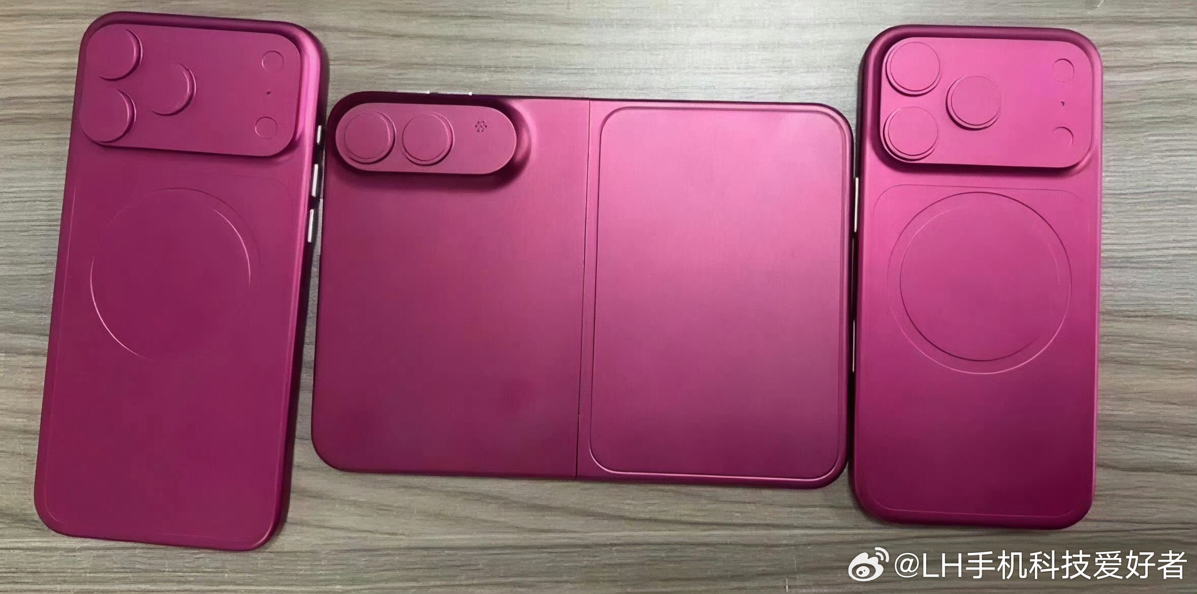 iPhone三款新机机模出炉基本确认,iPhone18 Pro、iPhone18 Pro Max机模看上去变化不大,整体设计风格延续现款。iPhone Fold折叠屏手机,属于矮胖类型,有些阔折叠的意思。这个屏幕形态有点意思,大家喜欢吗?