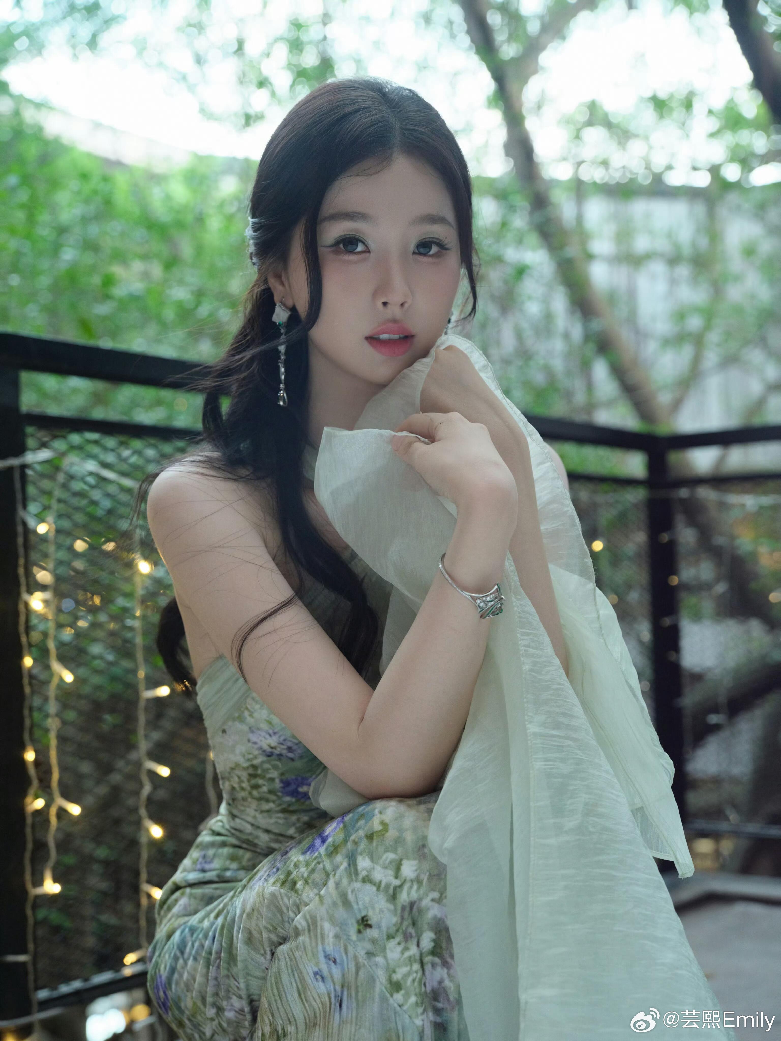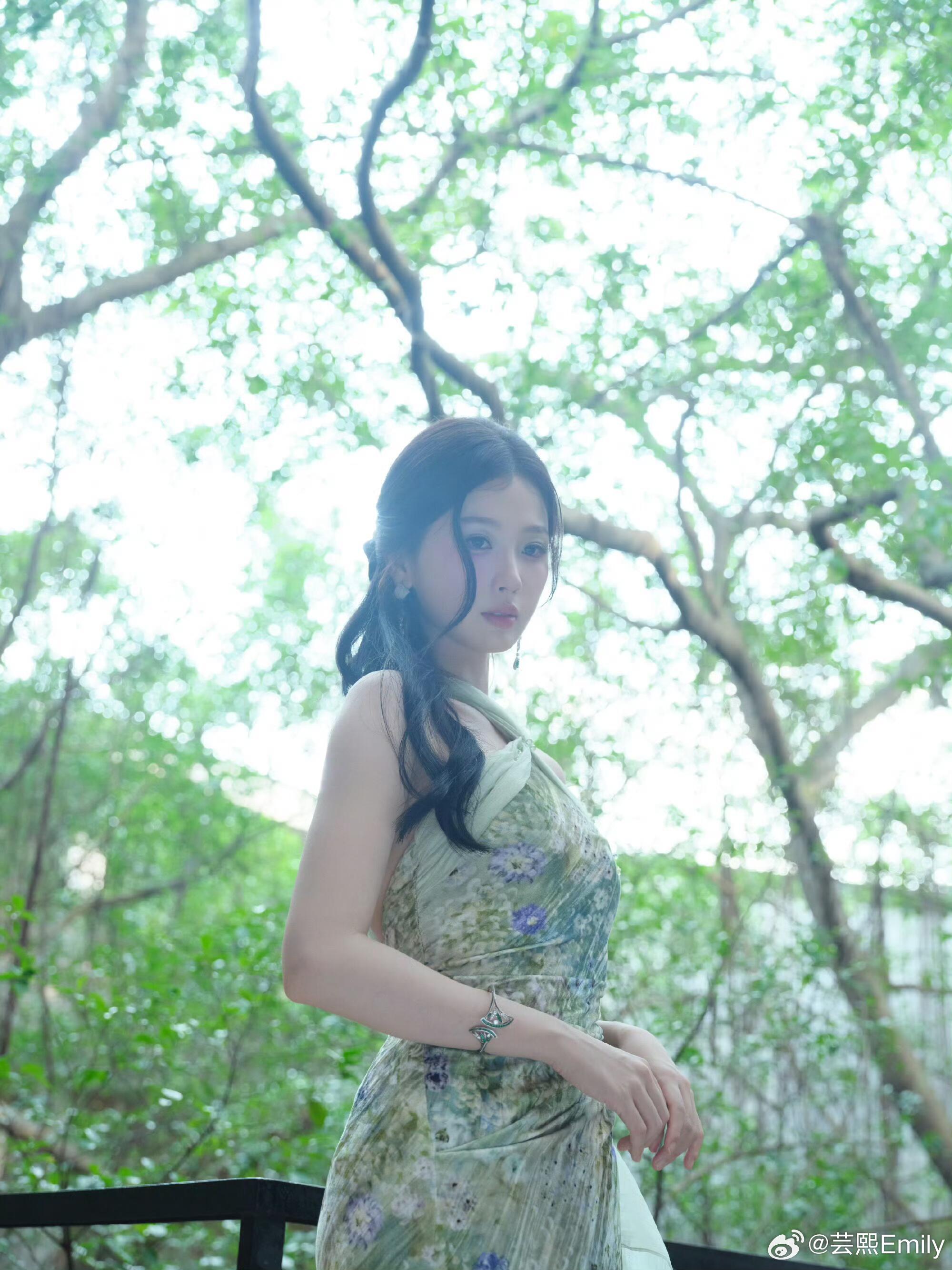 虞书欣 ✖️ 爱奇艺吉隆坡粉丝见面会造型虞书欣亮相爱奇艺吉隆坡粉丝见面会,以一袭春日森系造型,演绎温柔与灵动的极致融合。一袭一簇苔挂脖印花长裙,清透薄荷绿底晕染烂漫花簇,褶皱肌理勾勒曼妙曲线,飘带设计随步履摇曳,将春日草木的鲜活与女性的柔媚完美相融;搭配轩灵珠宝祖母绿耳夹与手镯,莹润宝石点缀颈间腕间,为造型注入精致贵气;Roger Vivier鞋履,平衡了裙装的飘逸与整体的利落感。从户外森系光影到室内复古氛围,她以松弛灵动的状态,将春日温柔与活力完美适配。