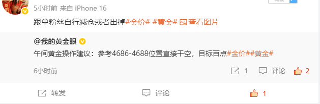 今天的交易就到此告一段落啦!因为一整天都在忙着实盘操作,微博上也没来得及更新几单策略。但我敢说,就咱们这一单,就足以吊打市场上所有的分析师!4688空单,最低给到4607,至于具体多少点利润,咱们就不一一细算了,懂的都懂