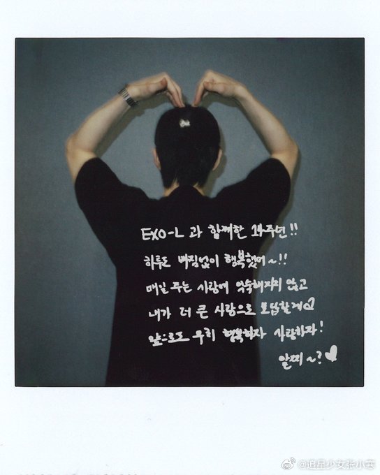 EXO手写信庆祝出道14周年EXO晒背影庆祝出道14周年,好感动!EXO晒背影庆