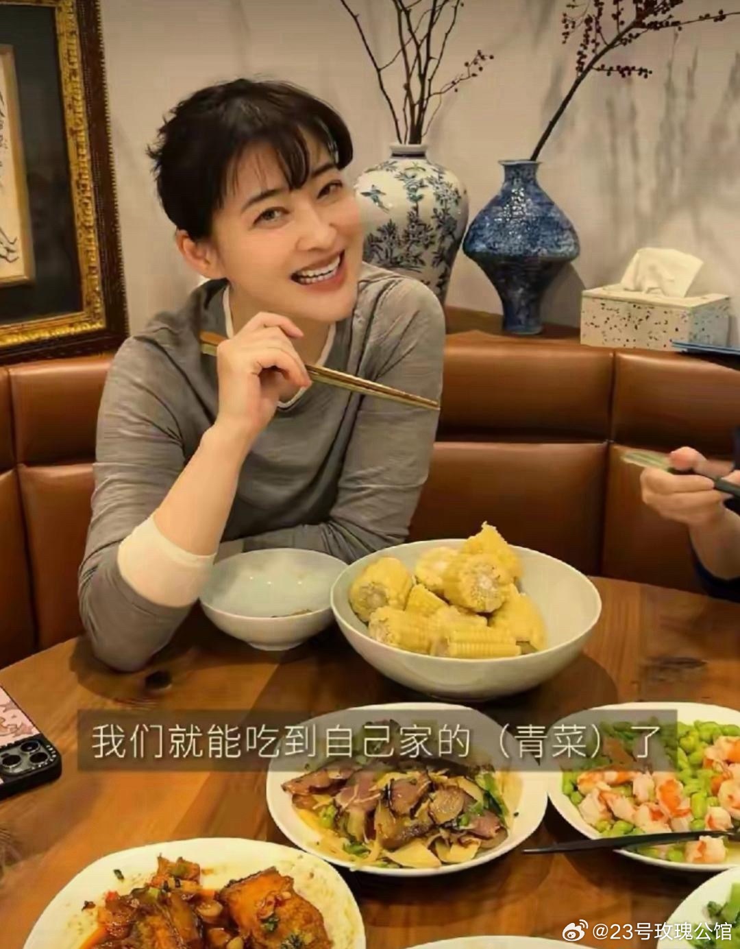 梅婷自己在家吃的也太丰盛了。