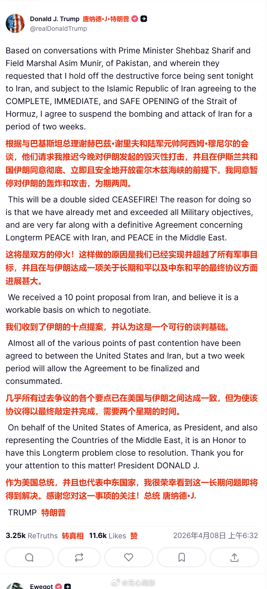 特朗普同意停火2周 大家猜到这个结果了吗?