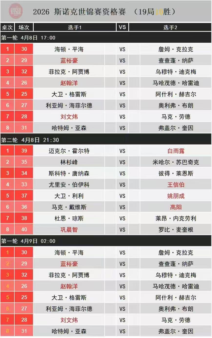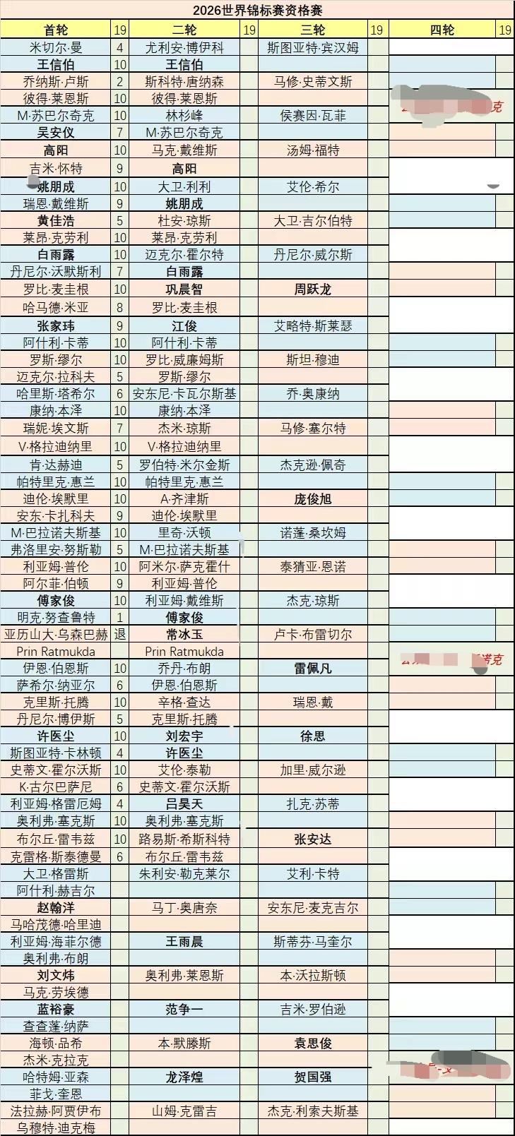 傅家俊、许医尘晋级,张家玮被淘汰,退出职业资格。 傅家俊10-1战胜泰国女双手名克,可以说是游刃有余。白雨露成为唯一晋级资格赛第二轮的女子球员,不容易,上一次晋级第二轮的还是9年前的埃文斯。傅家俊下一个对手是利亚姆戴维斯是一个青年才俊,有些实力。 许医尘对阵卡林顿,没想到还是大比分赢了,卡林顿还是颇有实力。许医尘下一个对手是刘宏宇。 张家玮还是有些可惜,率先拿到赛点,可惜输了。张家玮以WSF冠军的头衔,进入职业,两年就降级了。张家玮长台还行,就是选择有问题,连接不好。希望张家玮能卷土重来。目前,香港打职业的只剩下老将傅家俊了。 今天赵瀚洋、刘文炜、蓝裕豪打第一轮。 白雨露、巩晨智、王信伯、姚朋成、高阳打第二轮。 巩晨智这个赛季打得一般,保级也是岌岌可危。王信伯的对手是博伊科,看看能不能再进一步。女子选手白雨露刺客霍尔特,能有绰号的球员肯定还是有些实力。高阳对阵马克戴维斯,这也是戴维斯的保级之战。姚朋成对阵老将大卫丽丽。