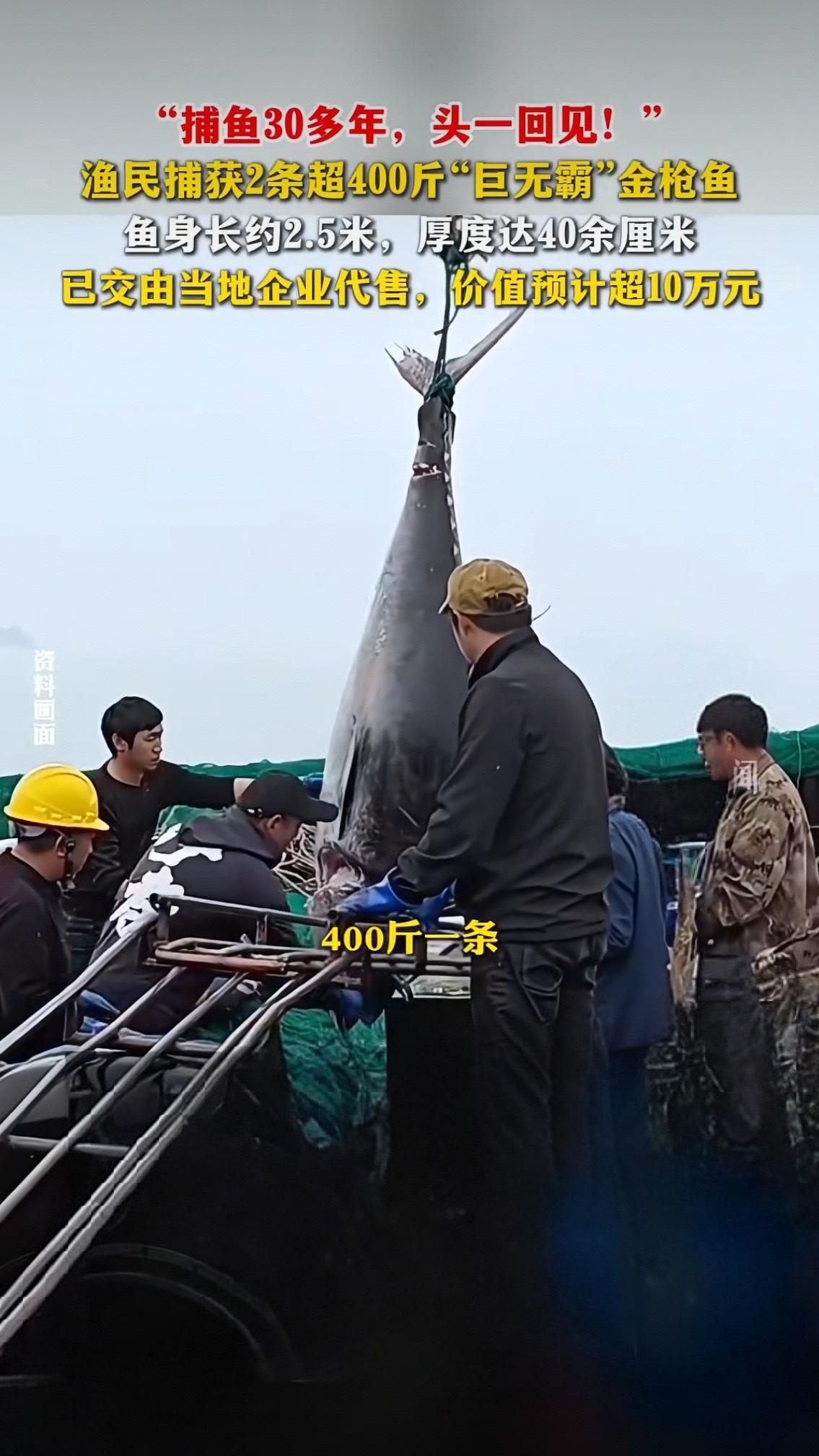 捕鱼30多年头一回见!渔民捞起2条400斤金枪鱼,价值10万背后藏着大海的馈赠