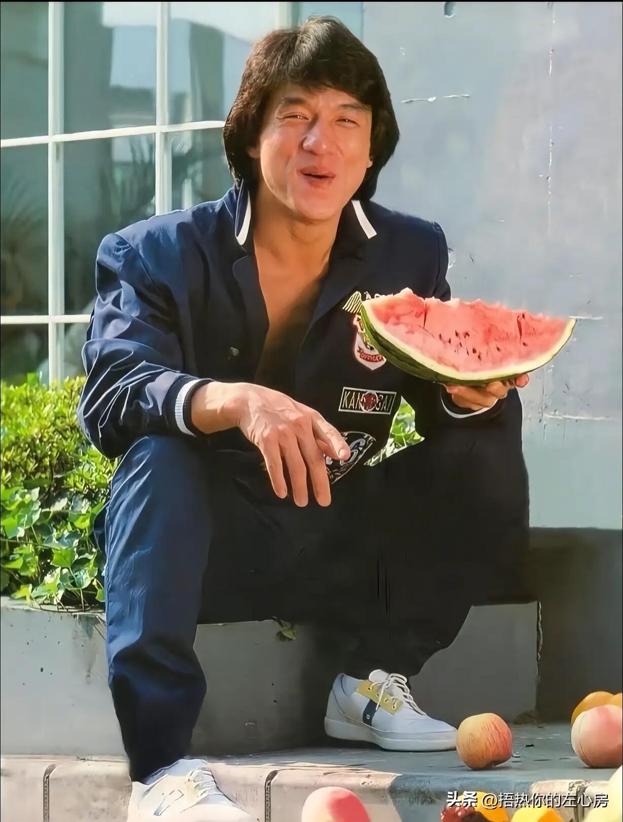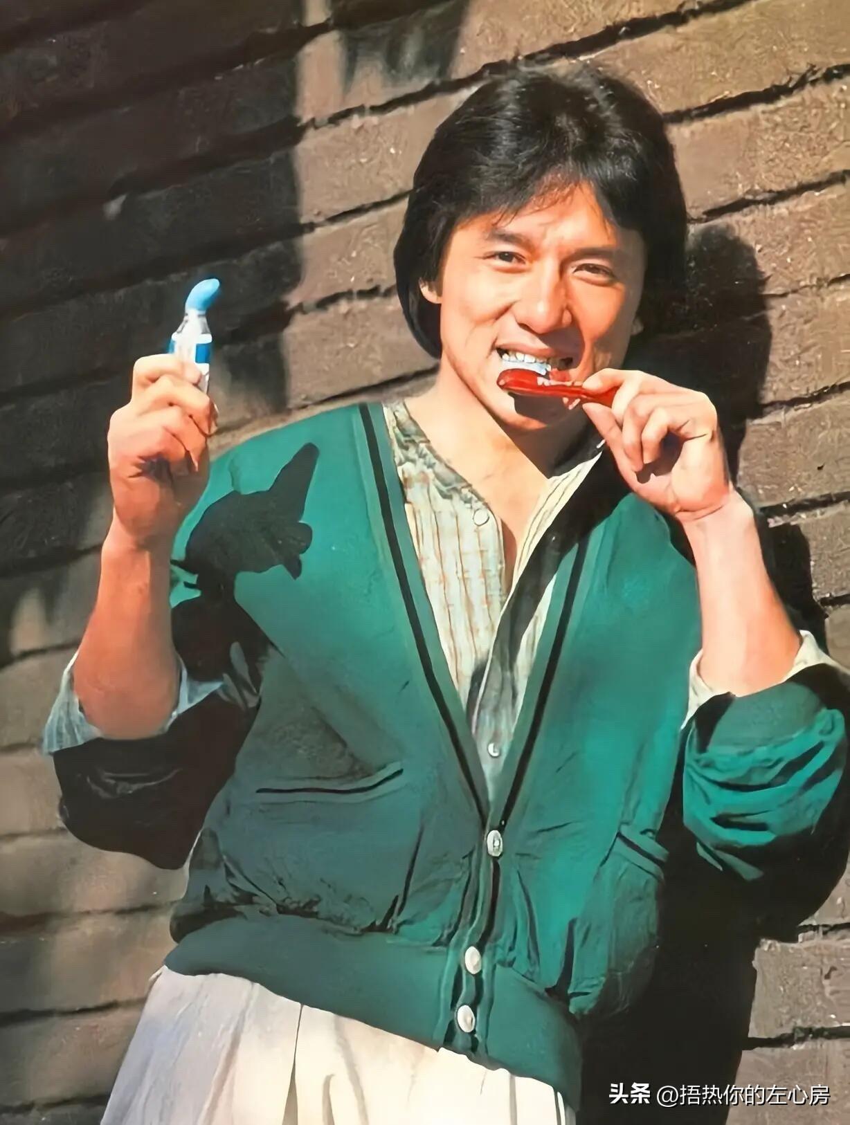 有穿着牛仔套装、留着蓬松卷发的青涩少年,眉眼清亮,浑身是藏不住的少年气;有蹲在摄影机前专注调试的片场新人,眼里满是对电影的敬畏与热忱;有扎着马步、一身劲装的功夫小子,肌肉线条利落,一招一式都带着不服输的狠劲;也有顶着餐盘搞怪、蹲在路边啃西瓜、拿着牙刷对着镜头笑的鲜活模样,没有半分巨星架子,只有烟火气里的赤诚与可爱。