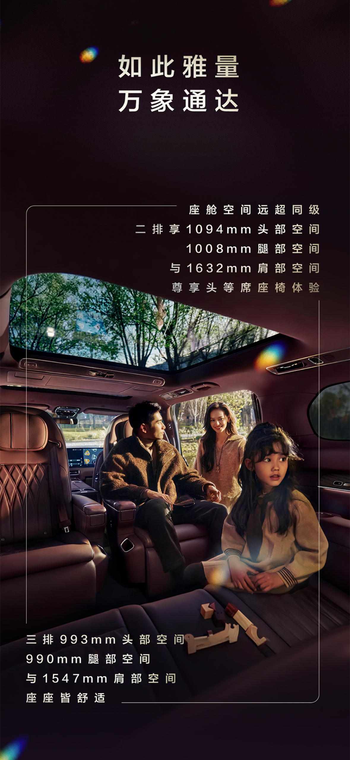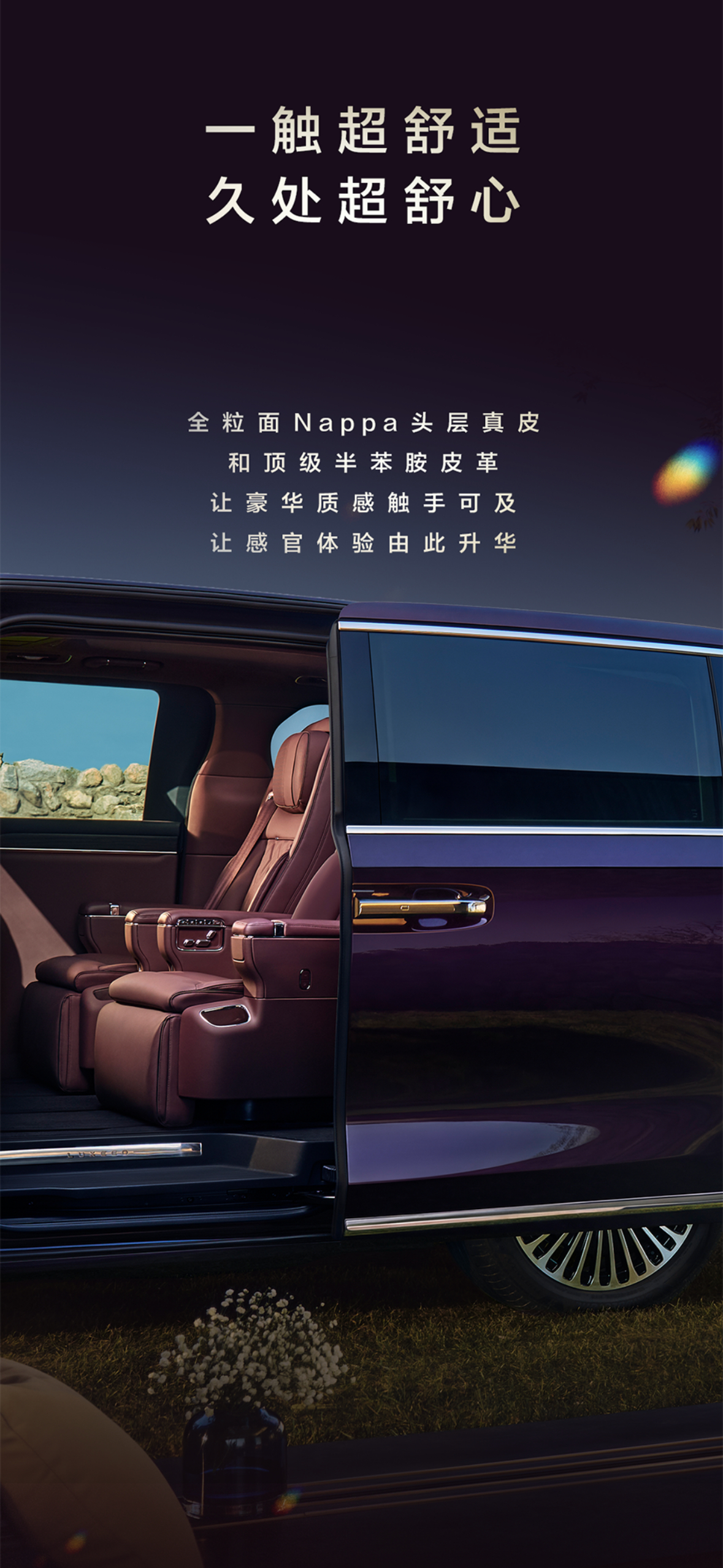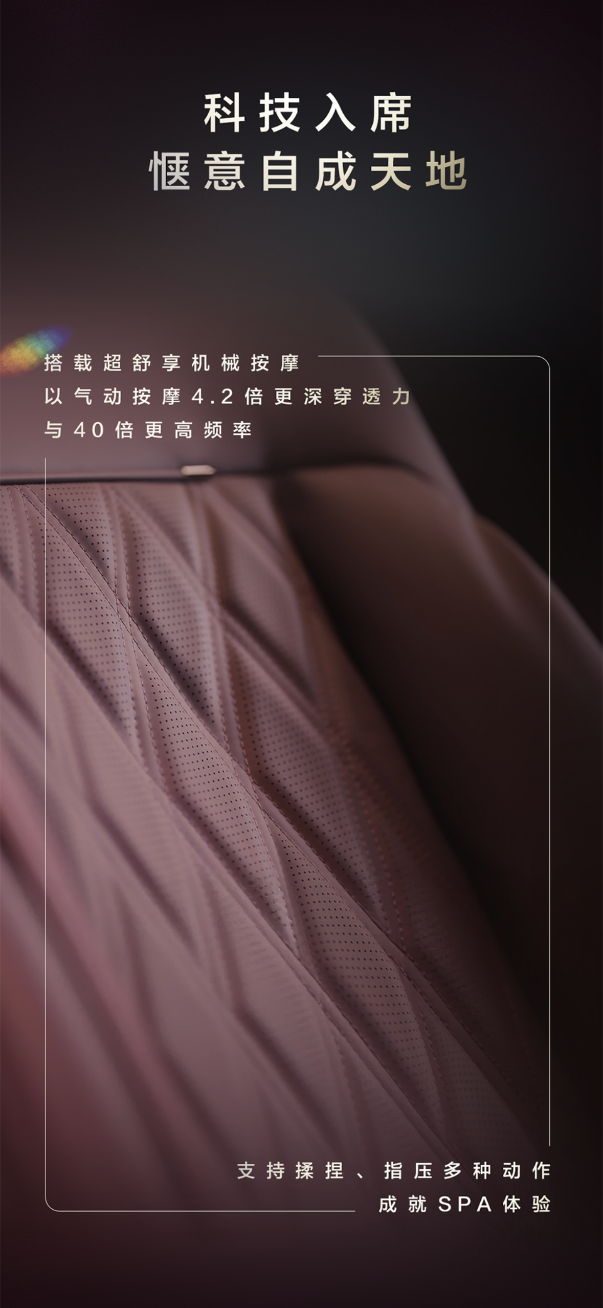 飞机高铁汽车哪个座椅最舒服 智界V9的座椅舒适度,足以对标甚至超越百万级豪华车型。全车座椅甄选全粒面Nappa头层真皮,二排扶手采用顶级半苯胺材质,搭配Surflex+Hysoft双层填充工艺,二排座椅靠背15层结构、厚度119mm,坐垫厚度达154mm,软硬度恰到好处,兼顾沙发般的陷入感与稳定支撑性,重新定义了MPV舒适标准,堪称移动的豪华大沙发!智界V9官宣搭载机械按摩