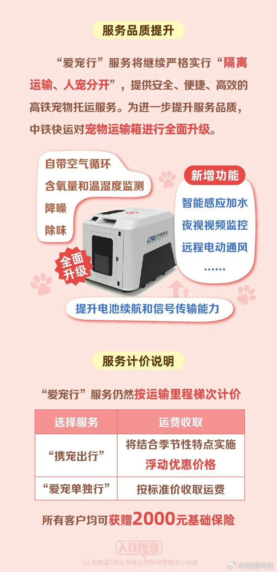高铁宠物托运服务升级,现在宠物能单独上高铁托运了。宠物运输箱也全面升级,自带空气