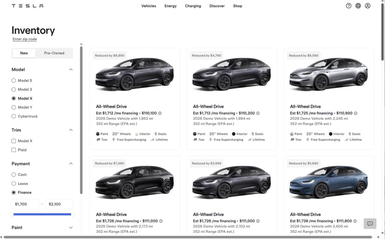 Model S和Model X已经停产,特斯拉现在对库存最后几辆车要价更高。目前库存中最便宜的Model S和Model X是之前用于门店展示的演示车,起售价分别约为10.6万美元和11.1万美元,而全新的Model S最便宜的版本起售价也要10.999万美元,顶配Model X Plaid的售价接近13万美元,涨了1.5万美元左右。