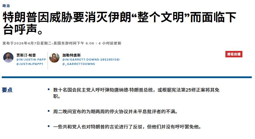 第二件更直接,说特朗普精神不正常,毕竟他前不久刚在社交媒体上放狠话,威胁要让伊朗文明彻底消亡,这话一出来,不光民主党人炸了,连不少之前支持他的人都坐不住了,直言这不是正常人能说出来的话。