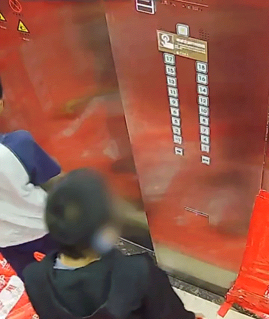 太惊险了!四川成都,两个男孩乘电梯时,其中一个男孩顽皮,竟拿出火机在电梯内玩火,