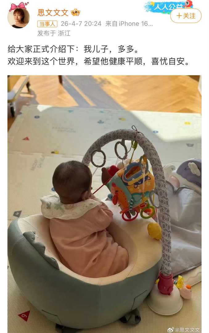 恭喜呀!!思文官宣当妈啦!晒儿子多多背影照,好幸福的一家