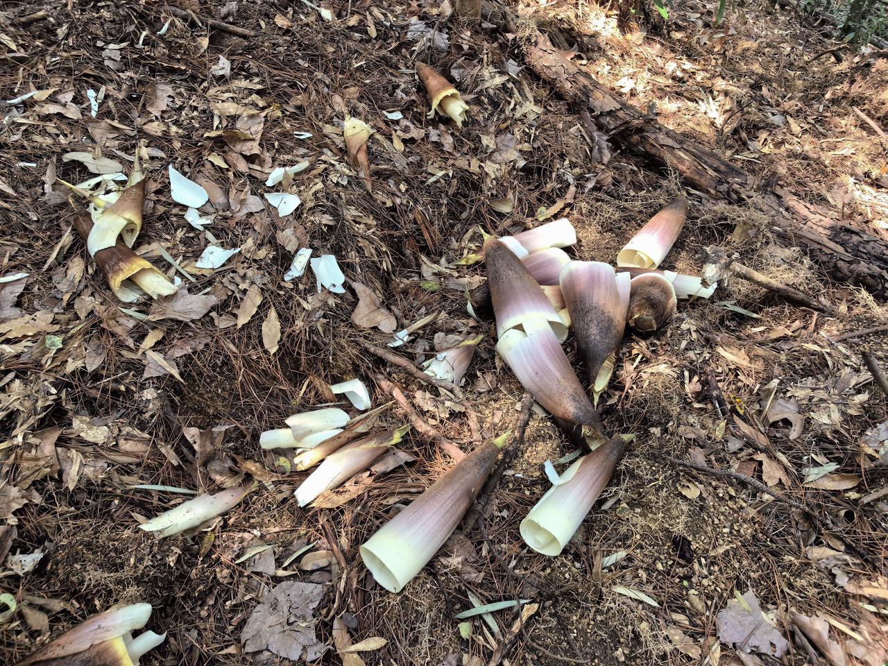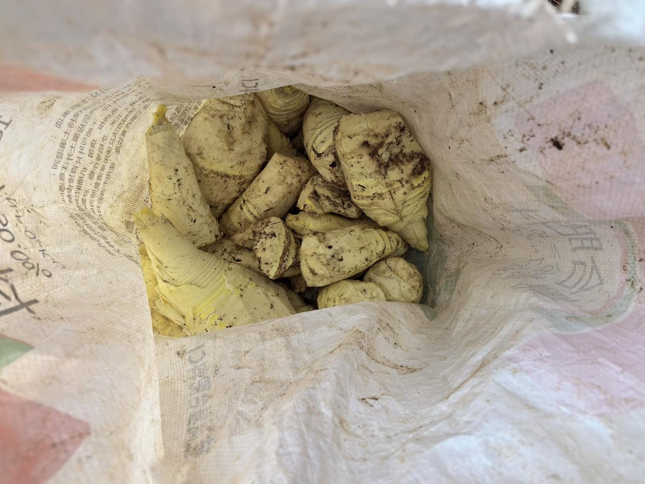 今年可能是天气不错,竹笋特别多,满山都是,而且个头也比较大,两个小时的时间挖了差不多有五十斤。可惜是在山上,挖的竹笋往下运很困难,不然挖的会更多!