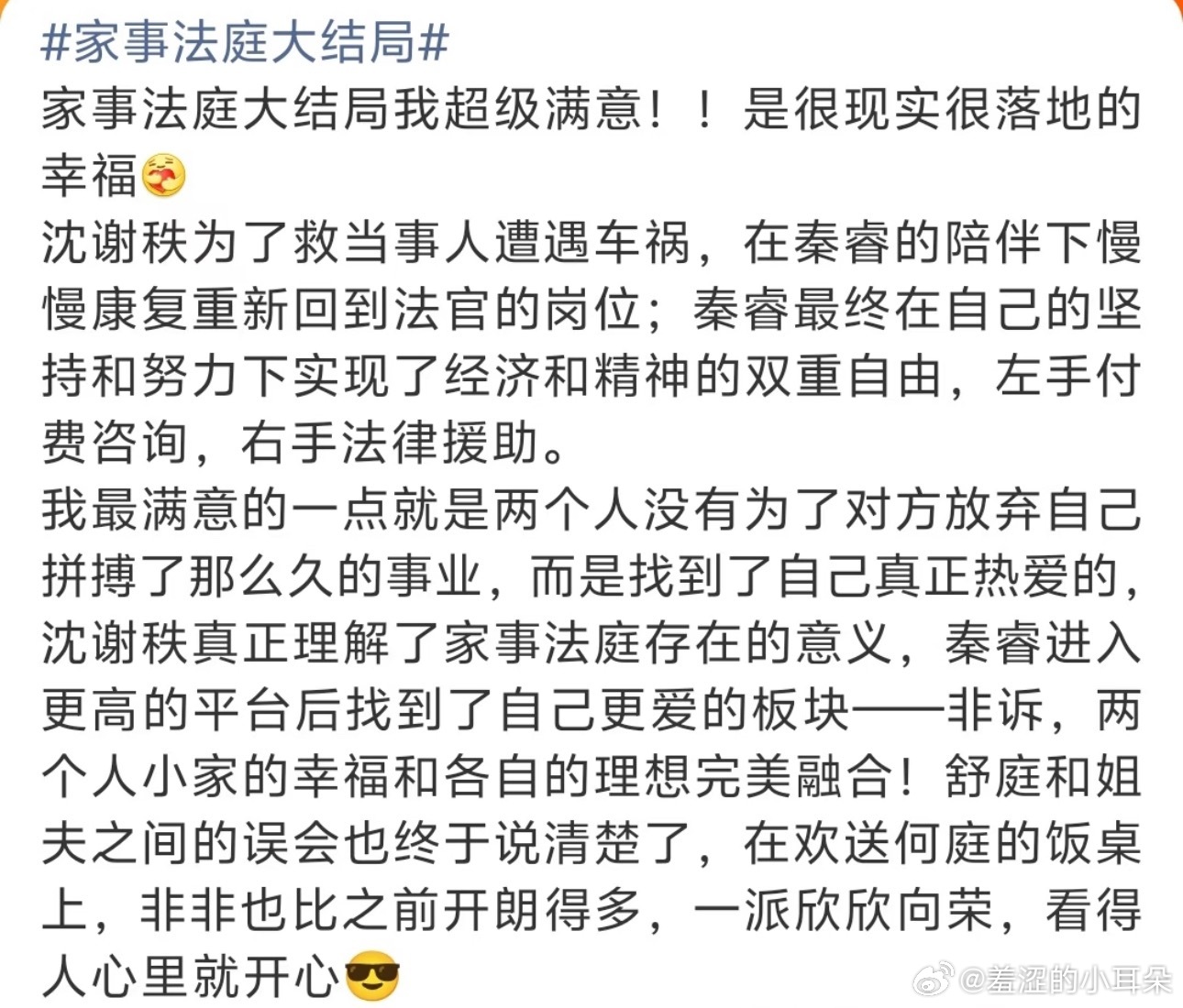 家事法庭大结局剧透来了,沈谢秩醒来之后还猝不及防的甜了我一下。 家事法庭大结局