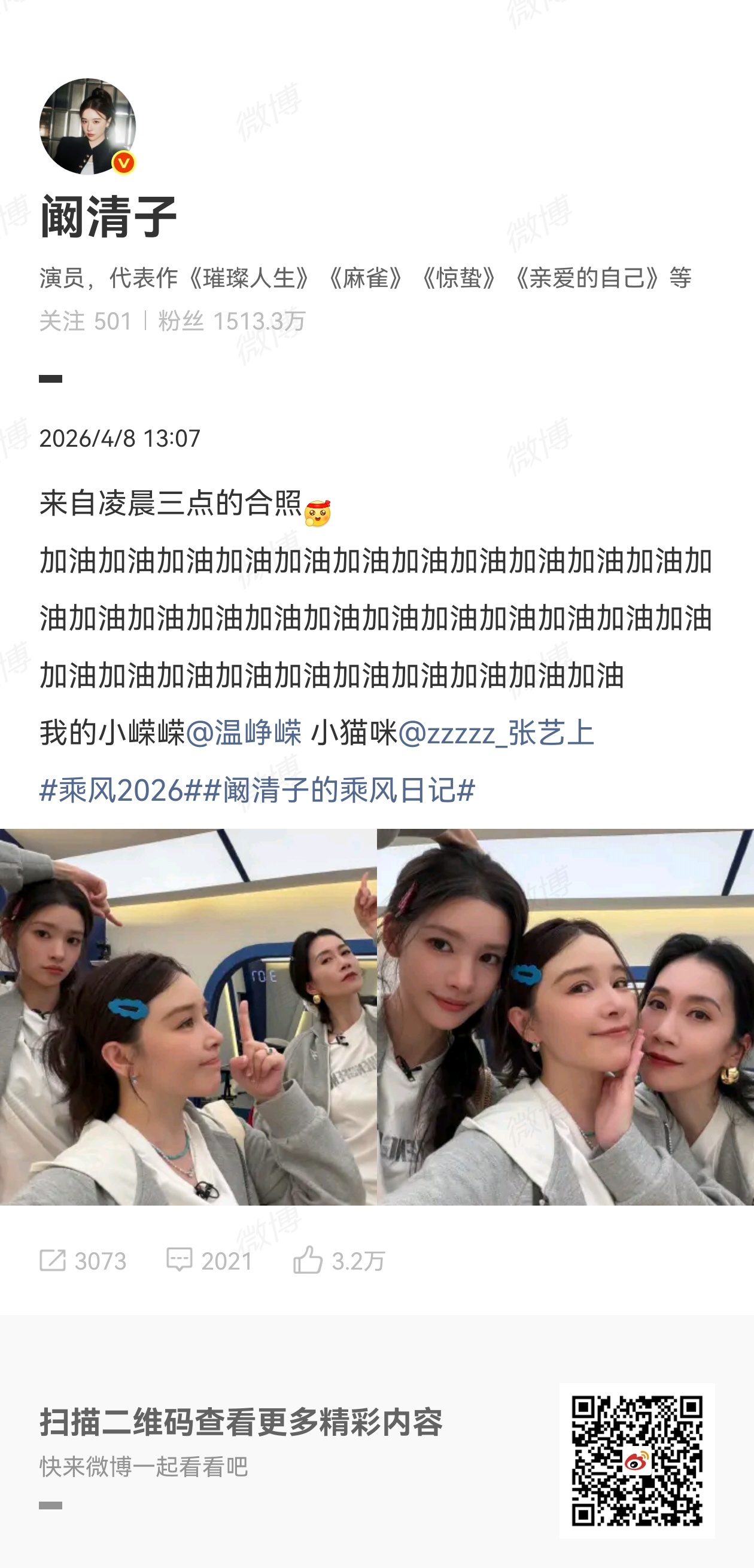 阚清子温峥嵘张艺上凌晨三点合照三位姐姐也太拼了吧!凌晨三点还在练习室努力,同框又美又有气场,认真搞事业的样子真的又飒又迷人!全网热点共创计划