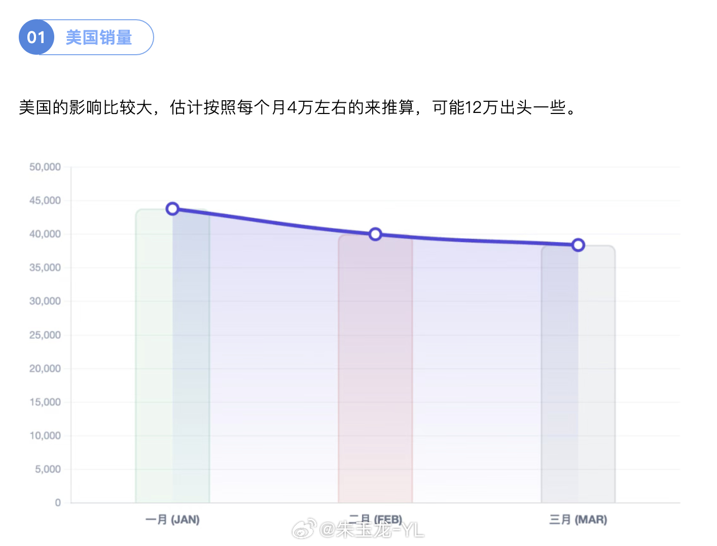 01美国销量美国的影响比较大,估计按照每个月4万左右的来推算,可能12万出头一些。