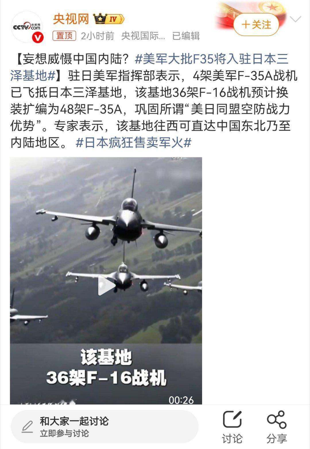 其紧邻东北亚核心区域,对中国安全构成直接威胁,本质是借“同盟”搞军事围堵 。此举加剧地区军备竞赛,违背和平潮流,中方需保持高度警惕,强化反制与防御部署。美军大批F35将入驻日本三泽基地