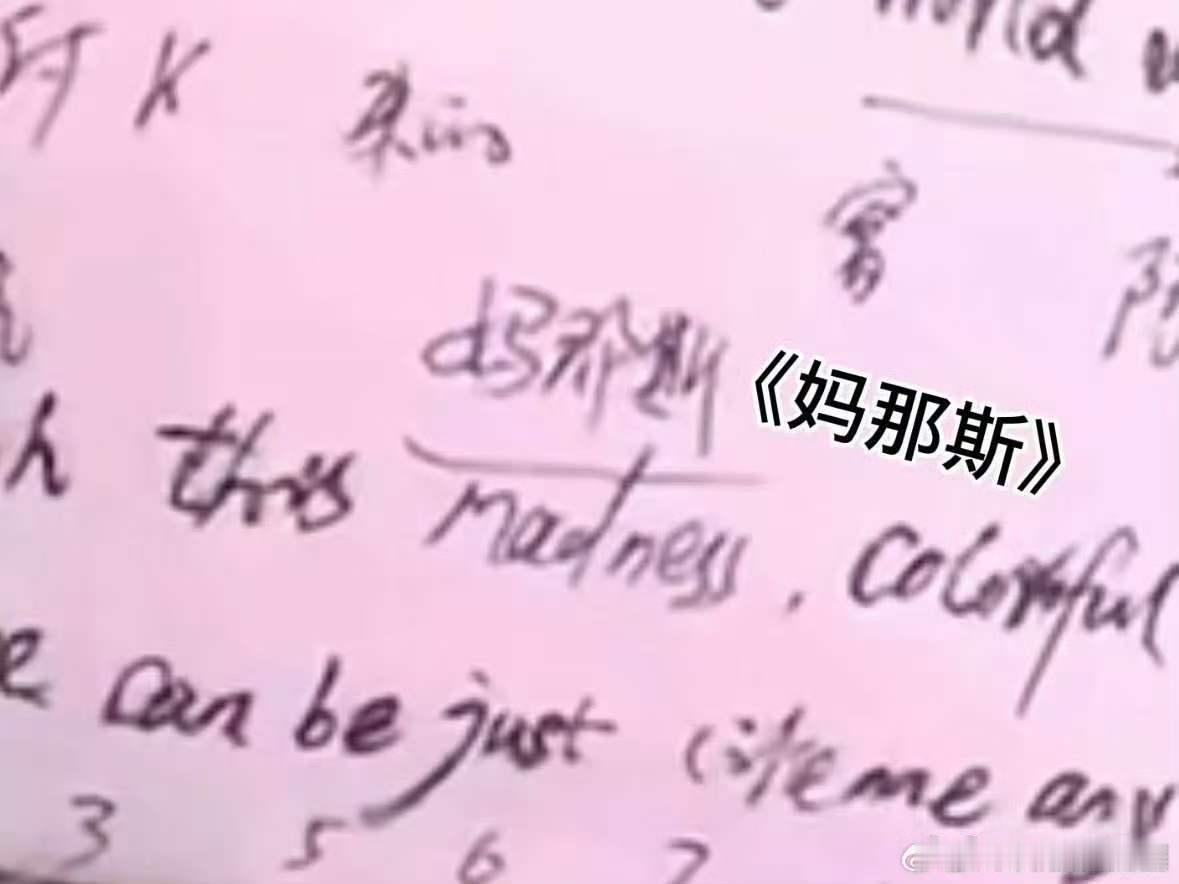 乌兰图雅歌词手稿浪姐小考 完全小品密密麻麻的笔记满是用心,乌兰图雅用谐音标注英文歌词,认真的样子好可爱