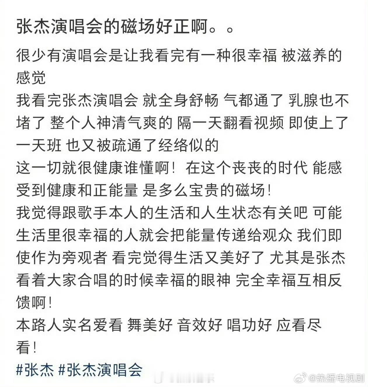 张杰晒粉丝对于演唱会的评论张杰分享歌迷repo✨每场演唱会都治愈人心,满场合唱双