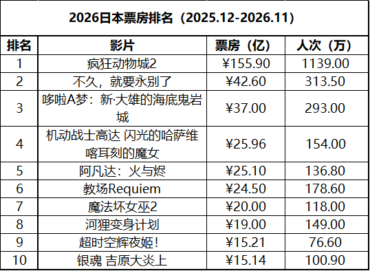 日本周末票房(4.3-4.5):《哆啦A梦:新·大雄的海底鬼岩城》六连冠,无新片上榜。