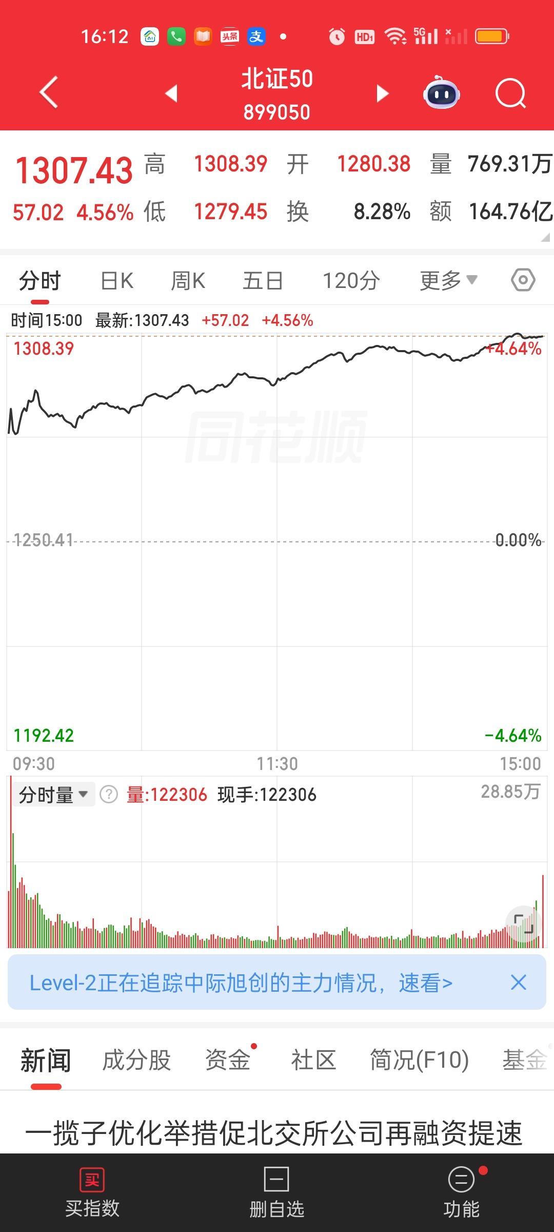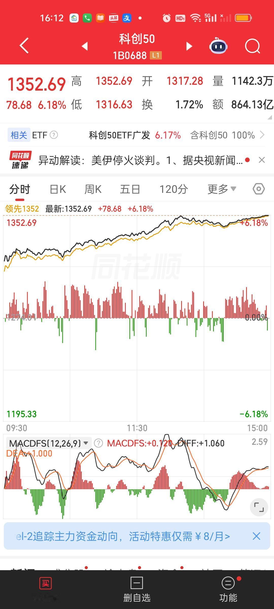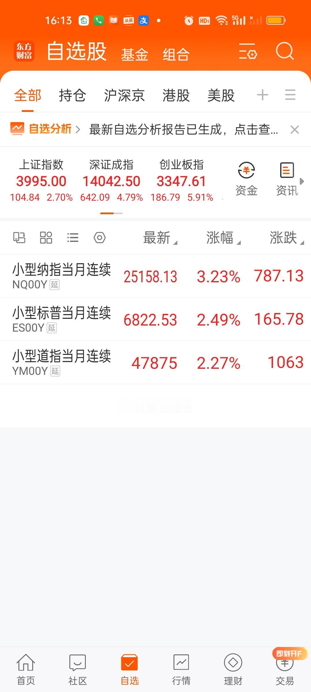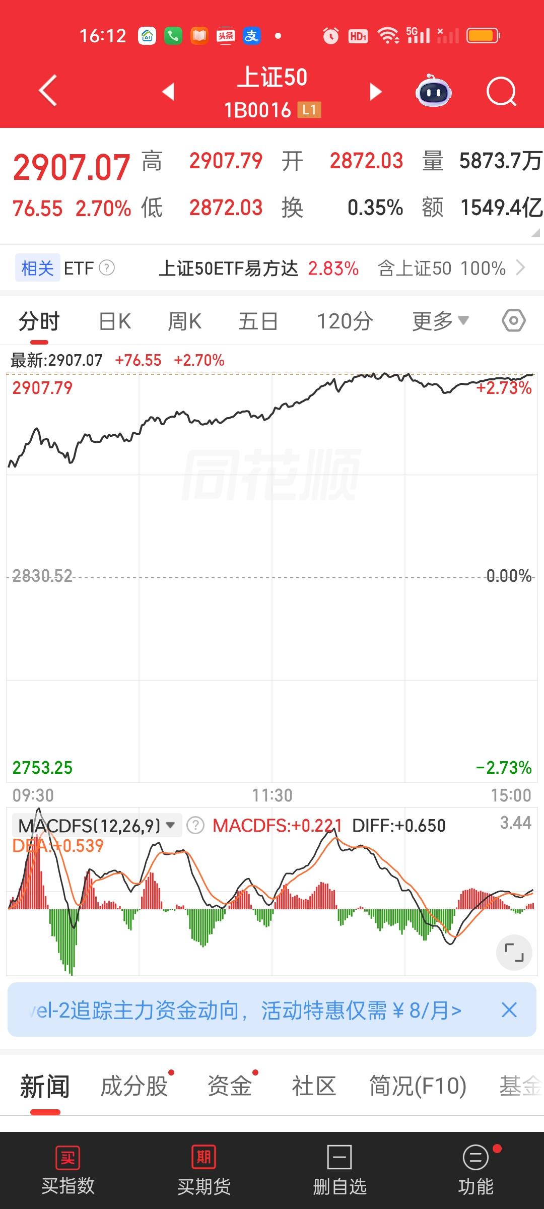 今天除了北证50,上证50和创业板指,其它所有指数全都收在了日内最高点,而且今天成交量放量了8271亿,大盘资金净流入超千亿。股民热情高涨,市场做多情绪强烈。再加上此刻美股三大股指期货全都是大涨的状态。那我们明天开盘大概率还会惯性高开。但应对策略不一样,场外基金明天收盘未必一定能大涨。场内基金明天惯性高开反而可以继续放大利润。但明天如果高开低走,下午回落的话,对场外基金是很不友好的!