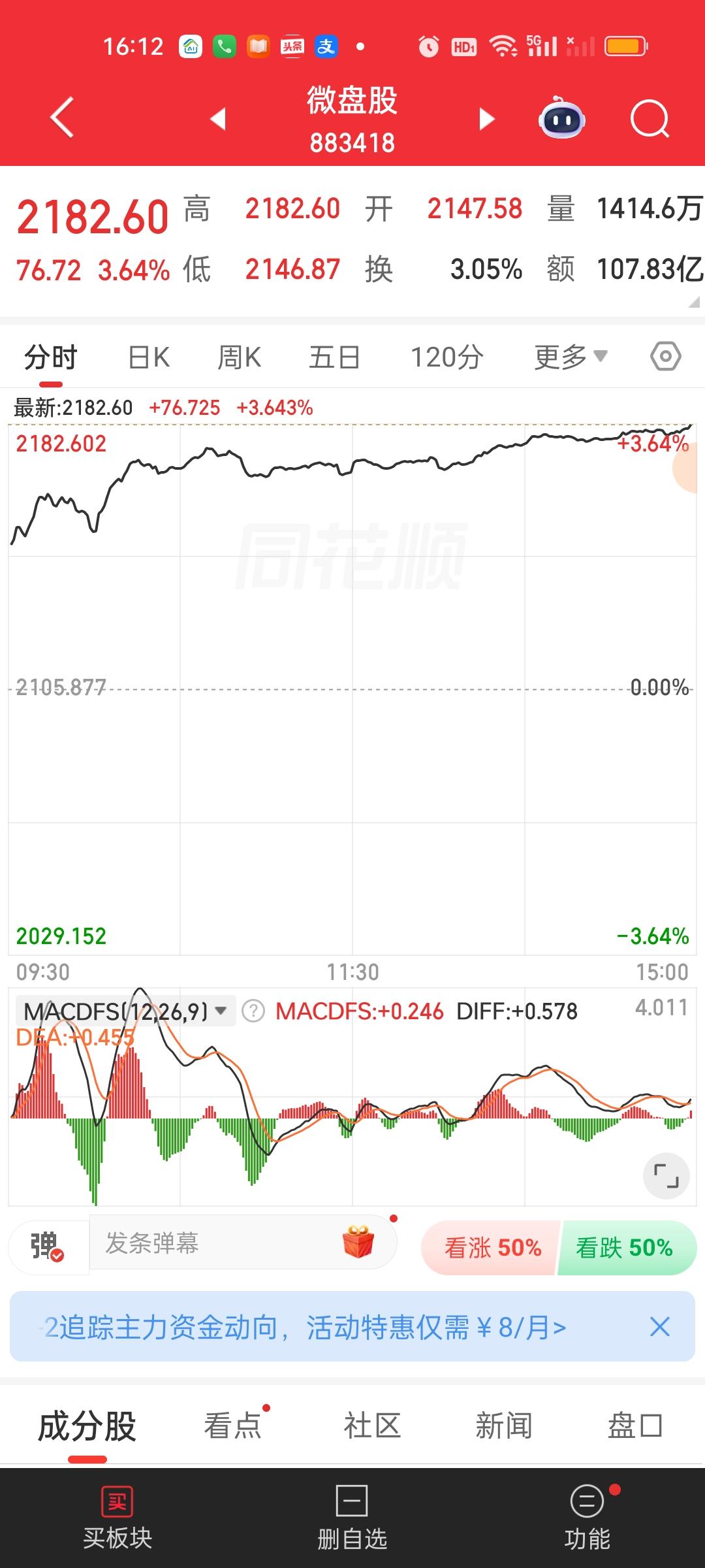 今天除了北证50,上证50和创业板指,其它所有指数全都收在了日内最高点,而且今天