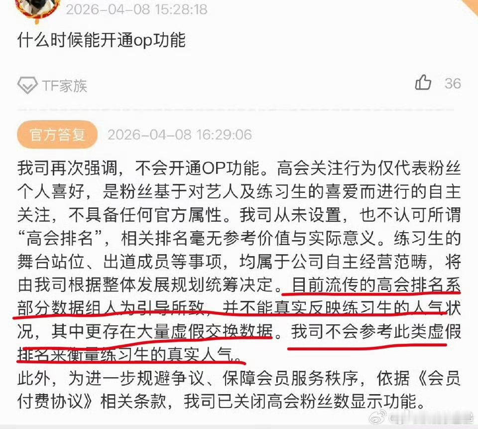 时代峰峻不会开通op功能时代峰峻回应高会粉丝数关闭挺好的