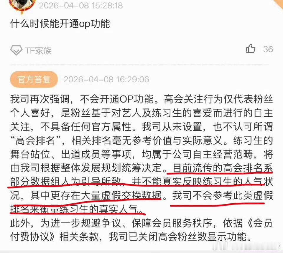 时代峰峻不会开通op功能时代峰峻回应高会粉丝数关闭会回应了