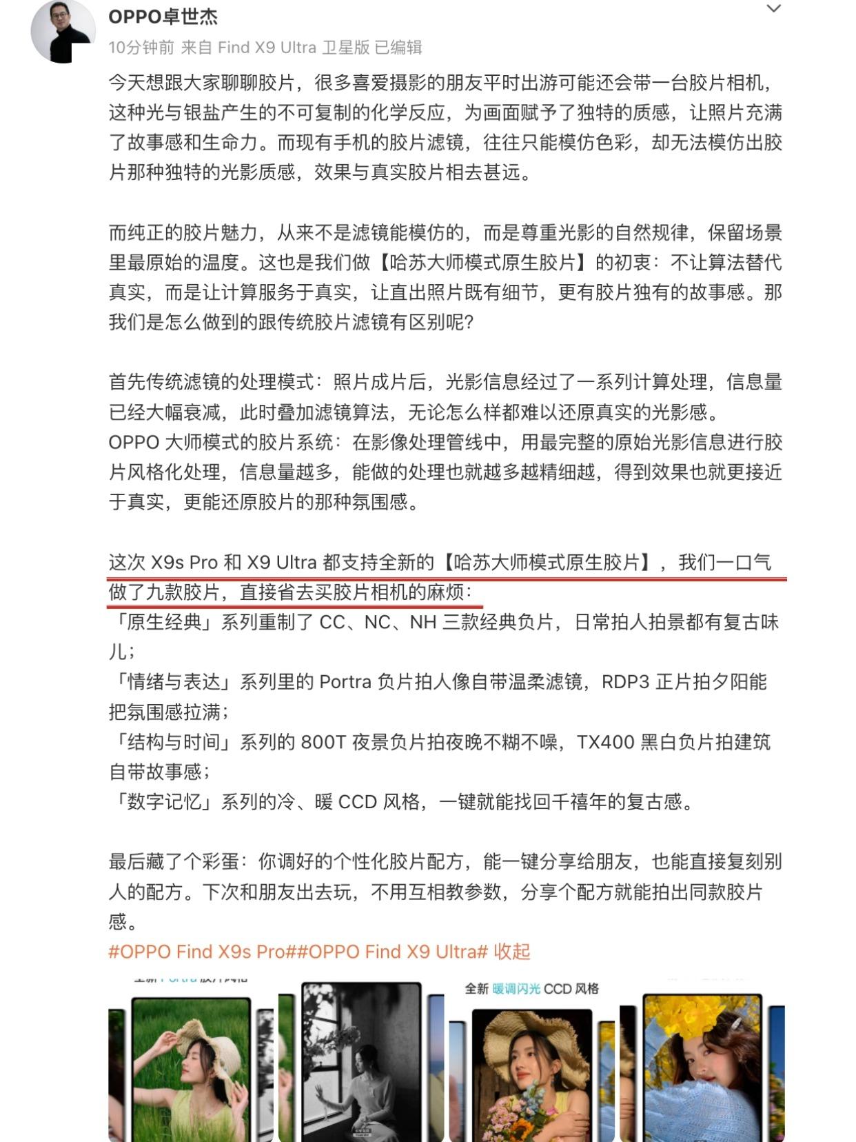 说实话平时拍照用的最多的还是长焦,Find X9 Ultra这种长焦巨猛的就很戳我,感觉OPPO是有站在用户角度出发去设计场景的,就是让你更好出片,有没有跟我一样蹲4月21日发布会的说说,你为啥想入OPPO这款哦?