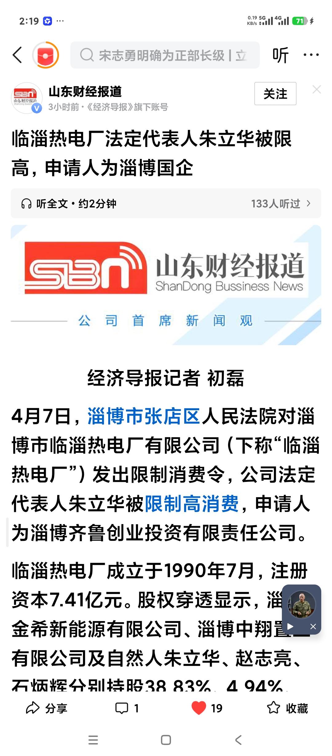 临淄热电厂法定代表人被限高消费了。