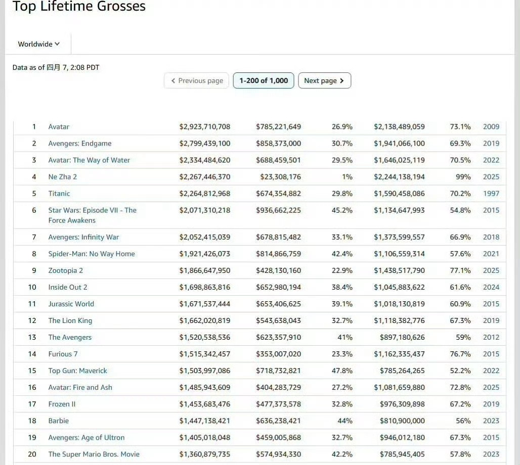 哪吒2票房升至全球第4第三部快点来吧!
