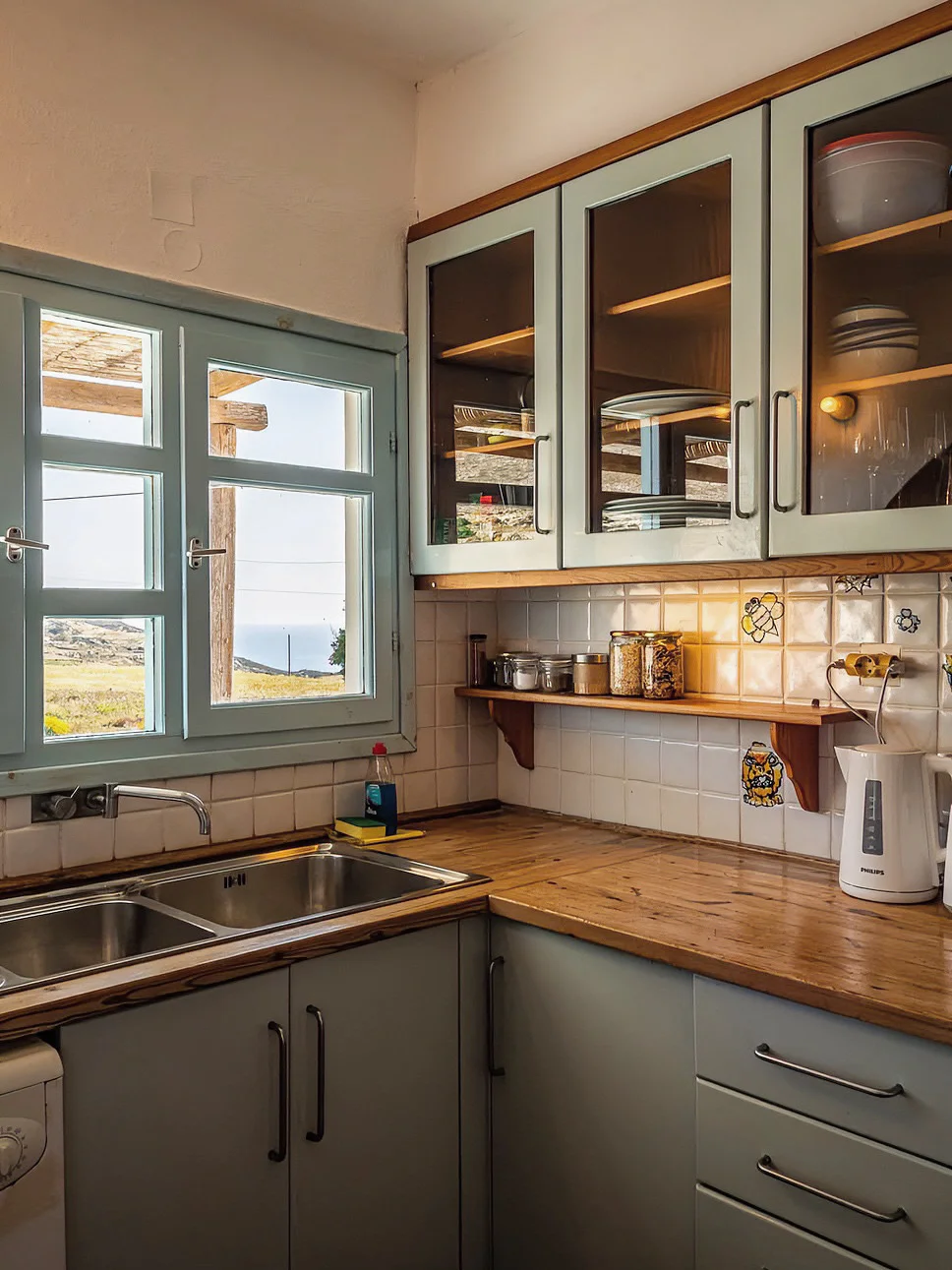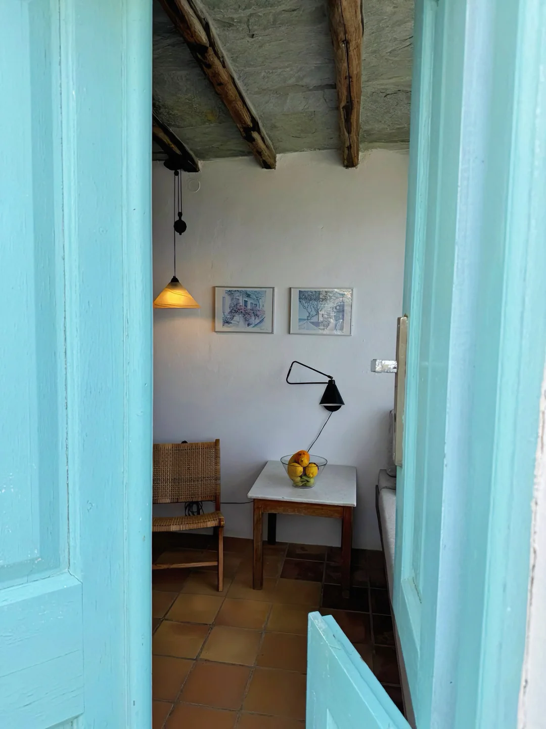 下午太晒了,就躲进屋里。厨房虽小但齐全,去镇上买点新鲜的食材,自己简单做顿饭。或者就躺在阴影里看书、发呆,看光影慢慢爬过白墙。洗衣机也有,长住几天完全没压力。