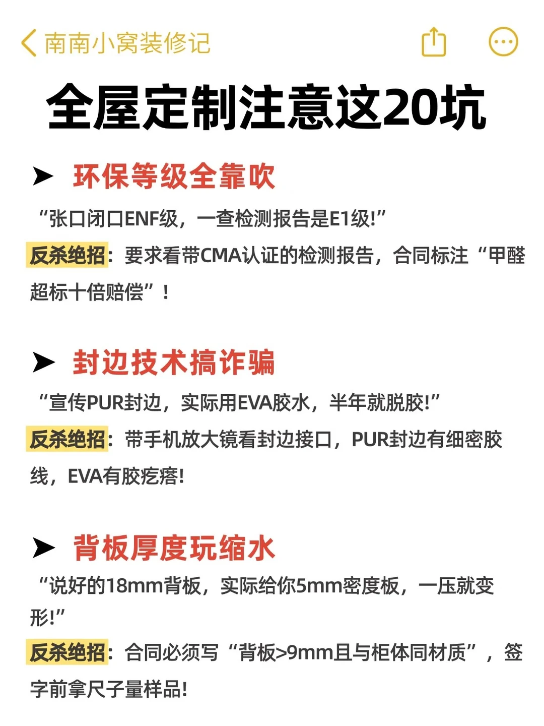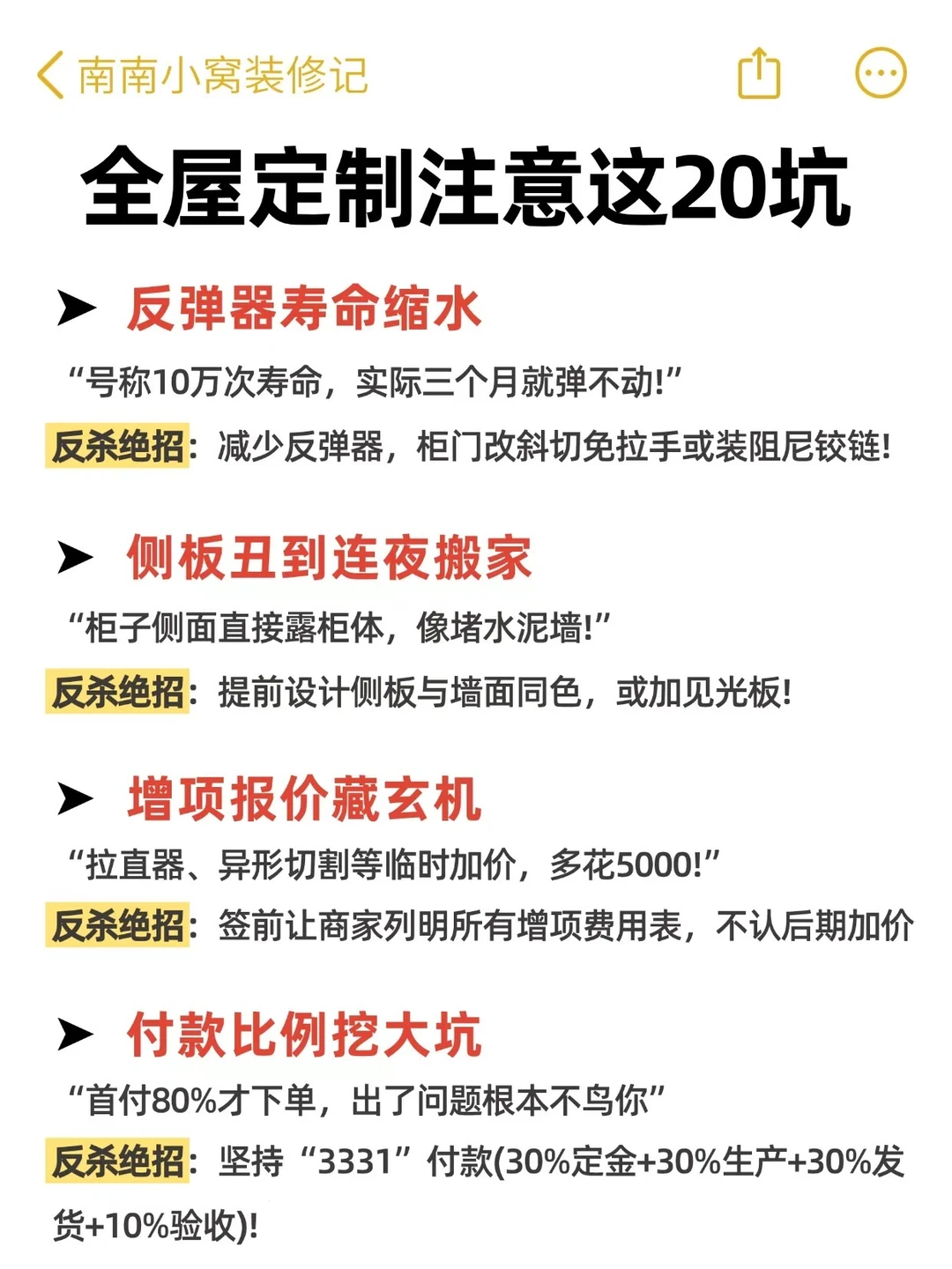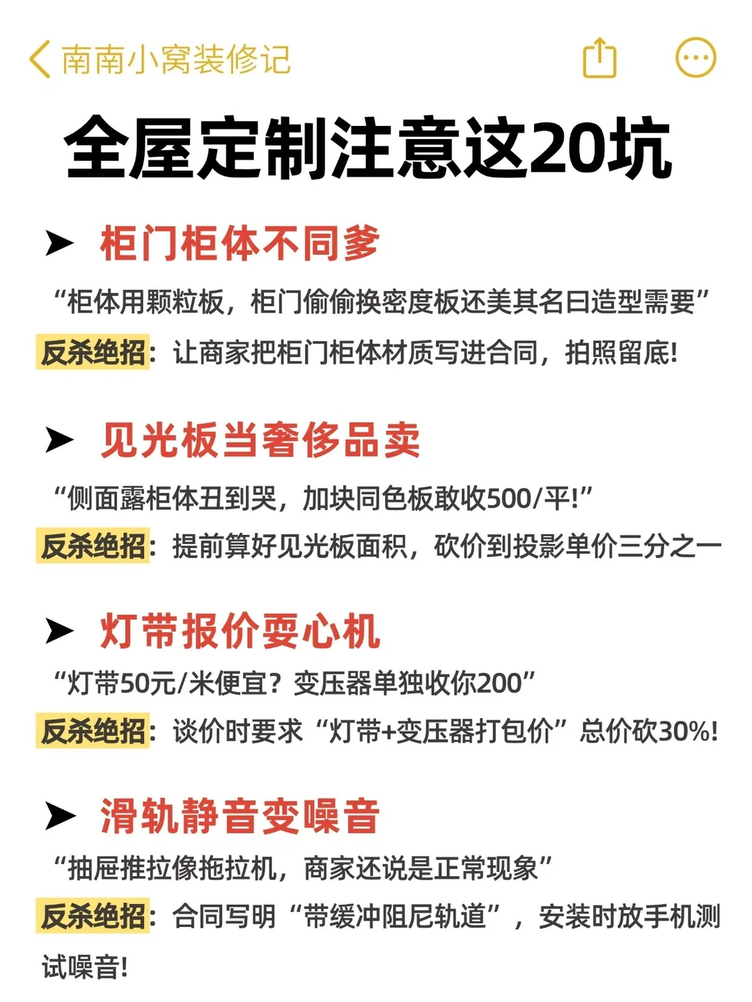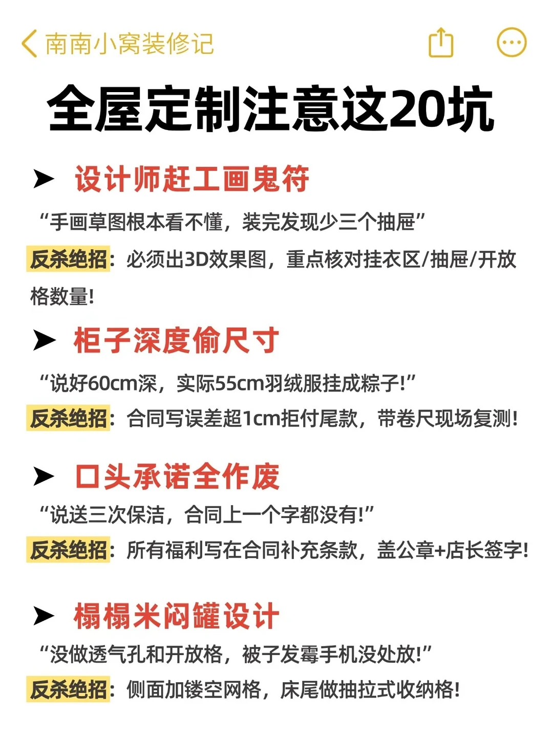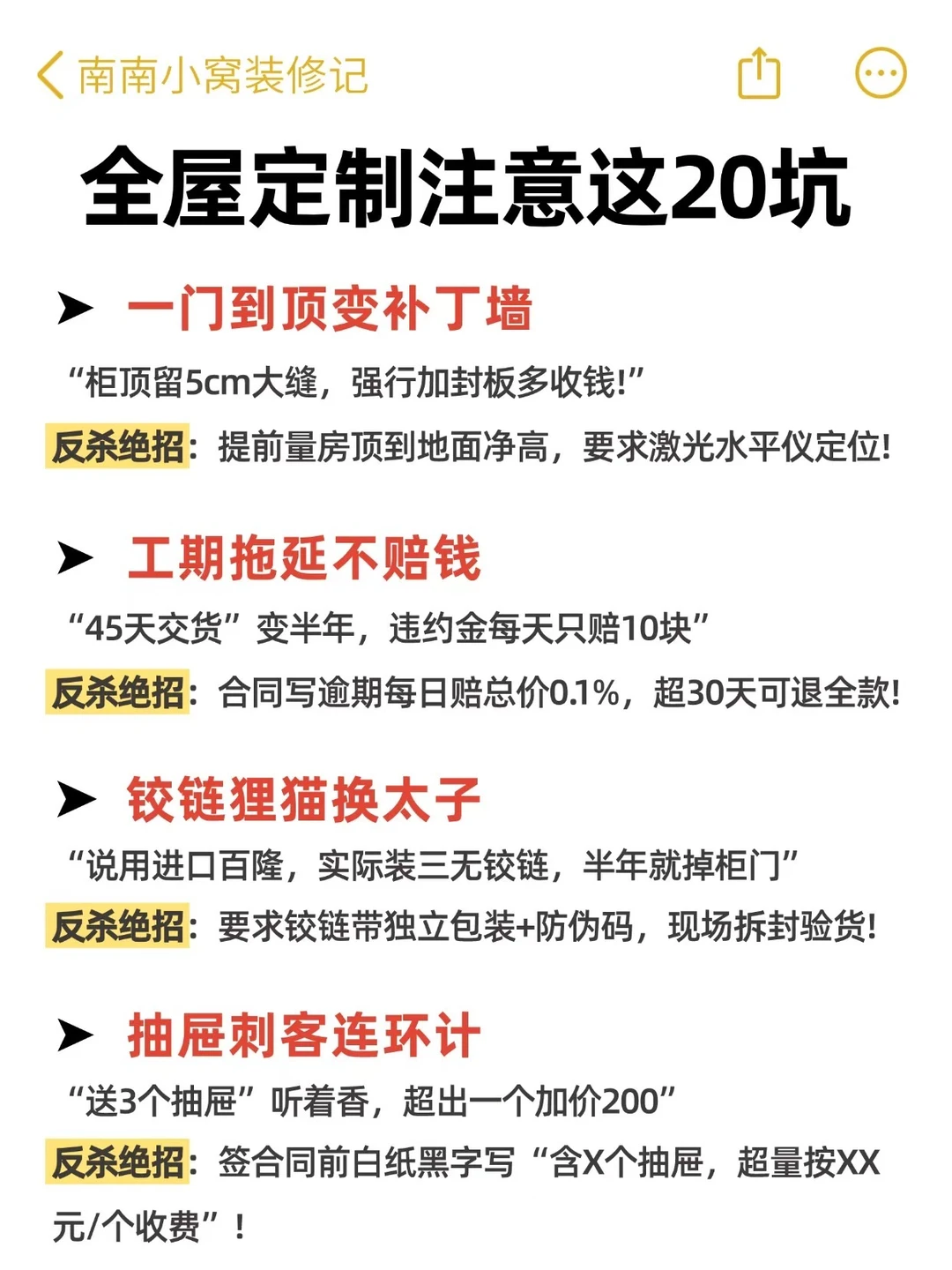 ✅南南今天把这20个坑整理出来,可能大家第一次谈全屋定制的时候都遇见过,一定要警惕这些: