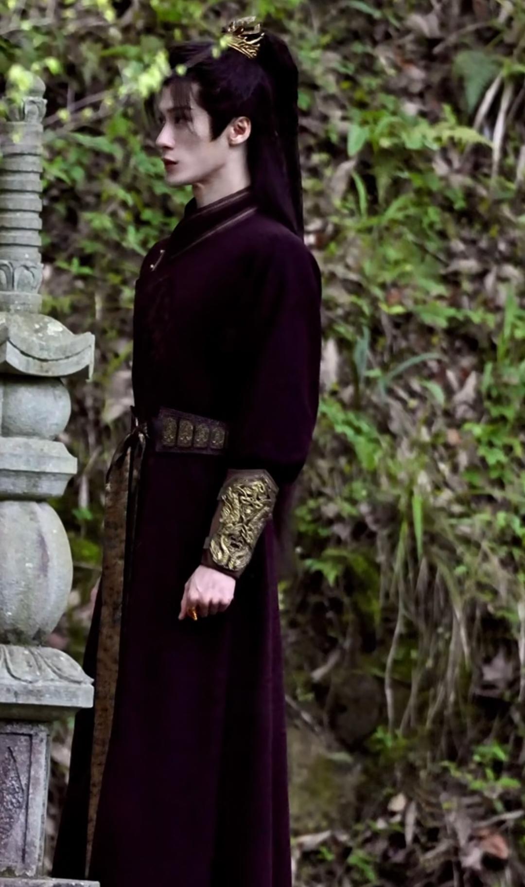 昨天有多破碎,今天就有多意气风发!风光霁月的谢家主又回来, 紫金束腰长袍 ,金冠高马尾,衣襟口设计很有游牧民族特色, 玉树临风仪表堂堂,和昨天受刑落魄的却山公子完全两模两样!
