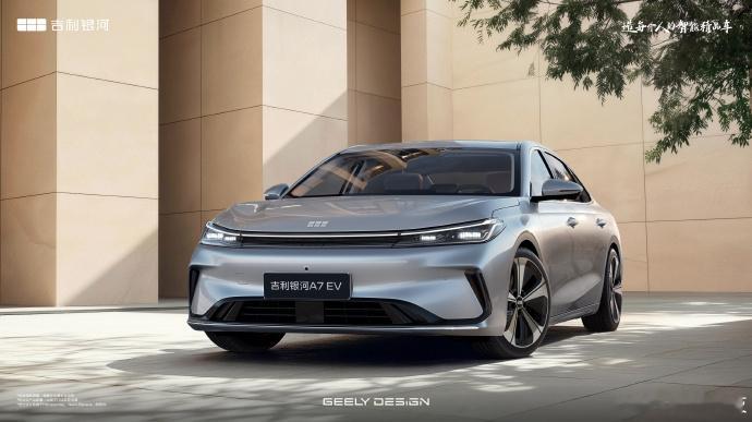 吉利银河A7EV官图发布 吉利银河首款中级纯电家轿正式定名为 “吉利银河A7 EV”,纯电续航550km,百公里电耗11.4kWh ,同时延续吉利银河A7在空间、智能、安全等特点,吉利银河A7 EV将于本月上市。