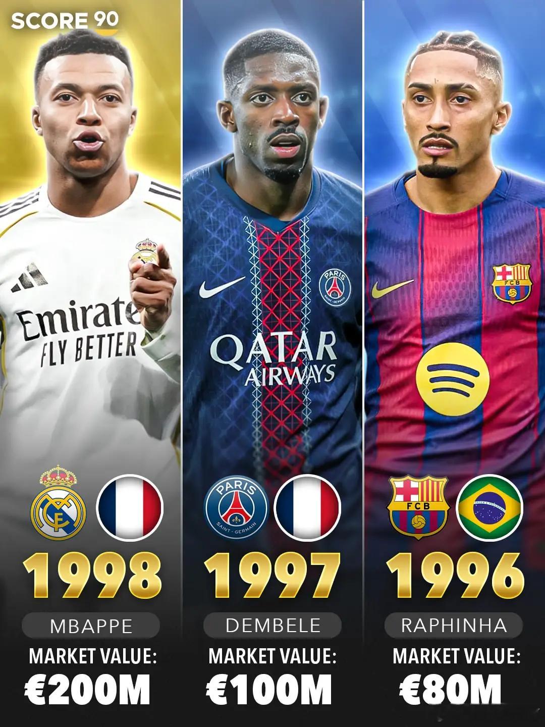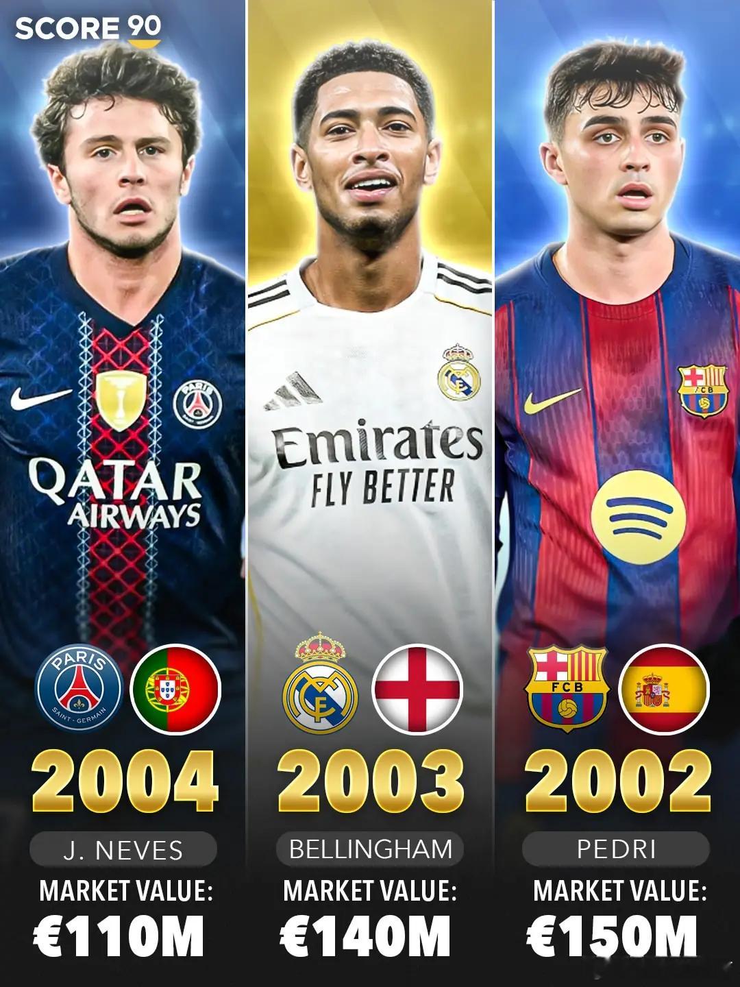 1967:三浦知良,2.5万欧1980:,法比奥7.5万欧1981:圣克鲁斯,10万欧1982:克雷格-戈登,5万欧1983:丹特,50万欧1984:蒂亚戈,席尔瓦60万欧1985:C罗,1200万欧1986:诺伊尔,400万欧1987:梅西,1500万欧1988:莱万多夫斯基,800万欧1989:穆勒,500万欧1990:维尔贝克,400万欧1991:范戴克,1800万欧1992:萨拉赫,3000万欧1993:凯恩,6500万欧1994:B费,4000万欧1995:基米希,4000万欧1996:拉菲尼亚,8000万欧1997:登贝莱,1亿欧1998:姆巴佩,2亿欧1999:赖斯,1.2亿欧2000:哈兰德,2亿欧2001:奥利塞,1.4亿欧2002:佩德里,1.5亿欧2003:贝林厄姆,1.4亿欧2004:若昂-内维斯,1.1亿欧2005:居莱尔,9000万欧2006:迪奥曼德,7500万欧2007:亚马尔,2亿欧2008:伦纳特,卡尔6000万欧2009:马克斯-道曼,2000万欧2010:通卡拉,100万欧
