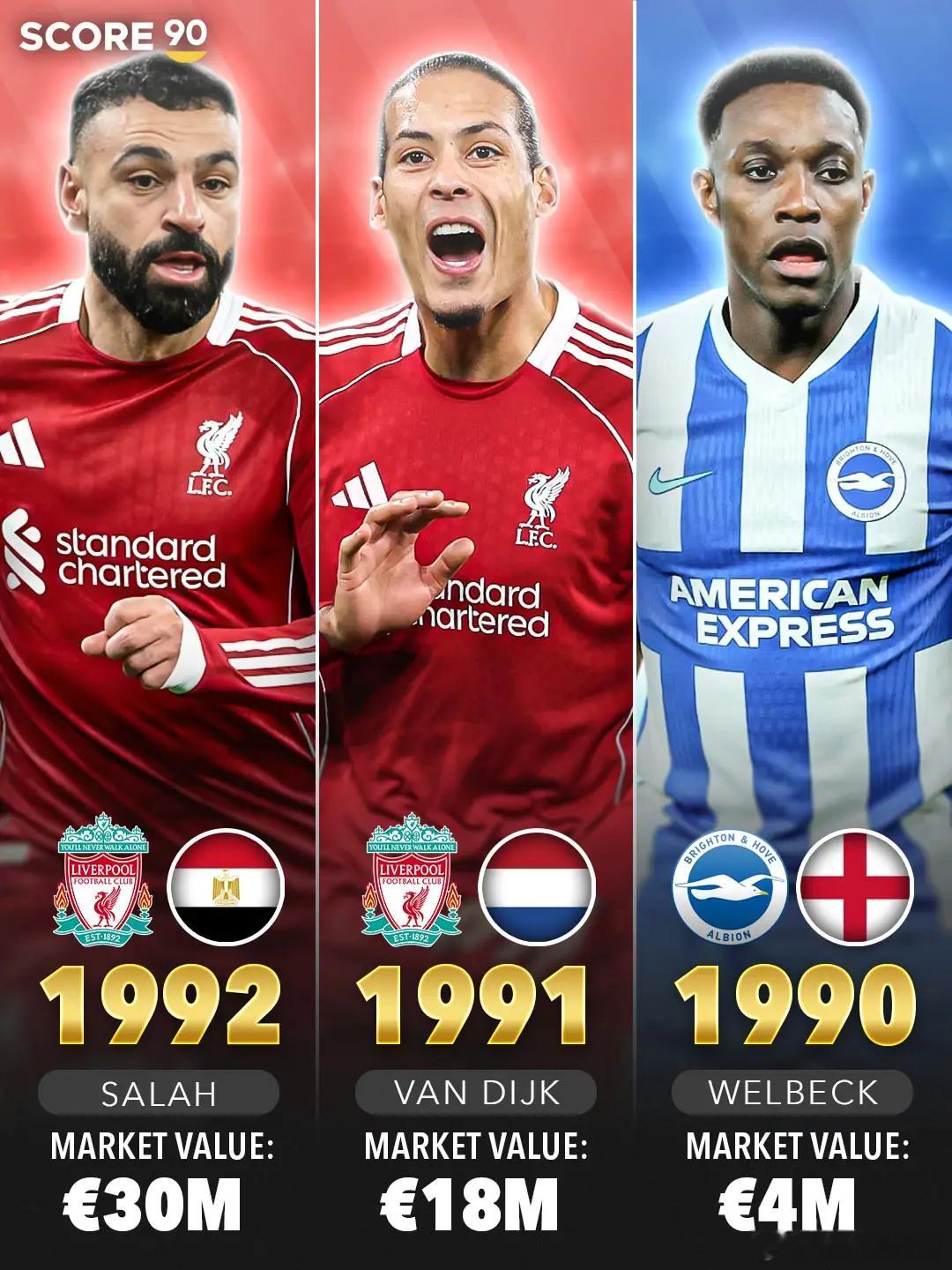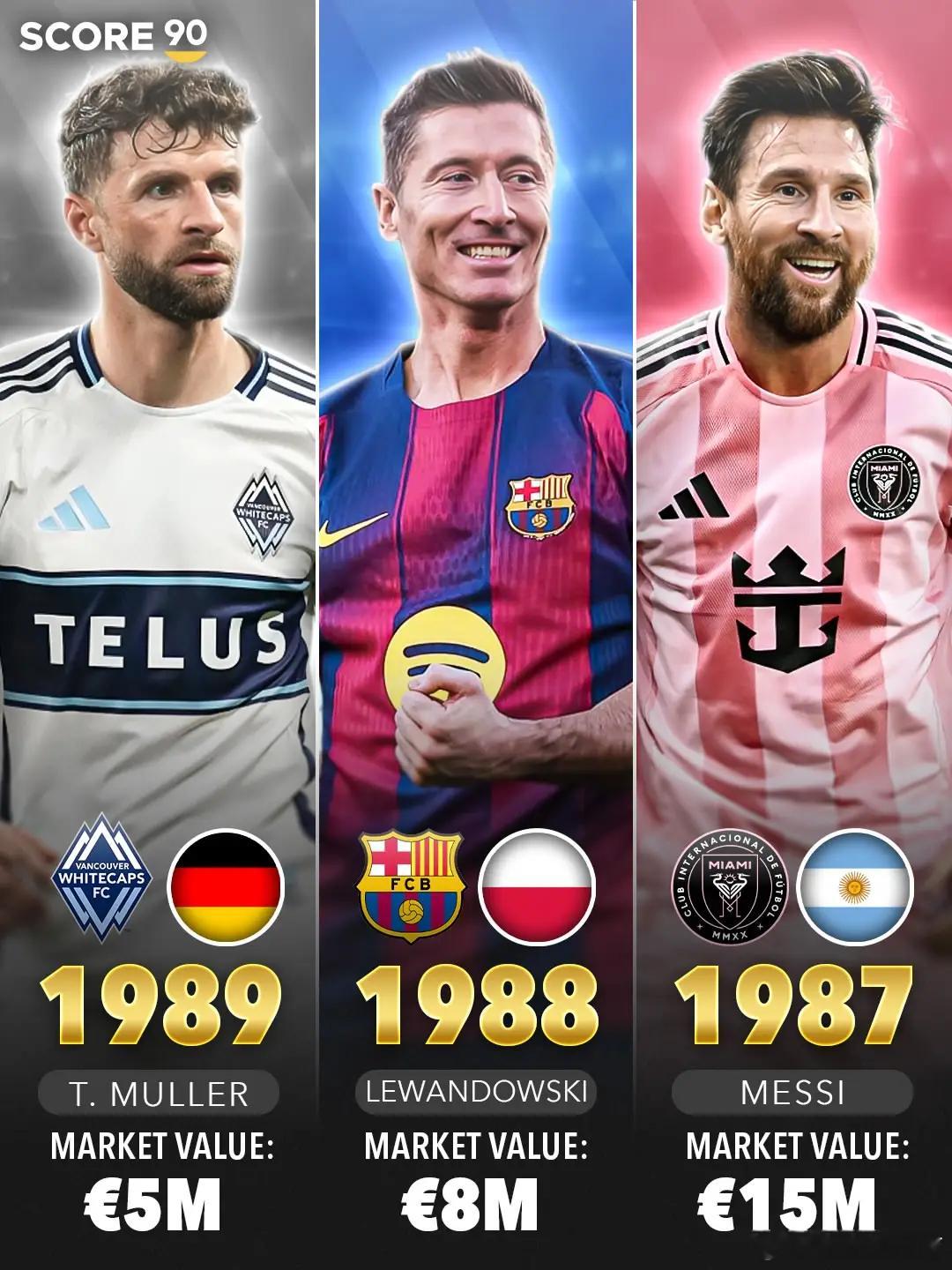 Score90发布了一组题为“1967年以来各出生年份最高身价球员”的系列海报,图片注明数据源为Transfermarkt。整份榜单按出生年份逐年排列,把不同世代的代表人物放进了同一张身价坐标系中。