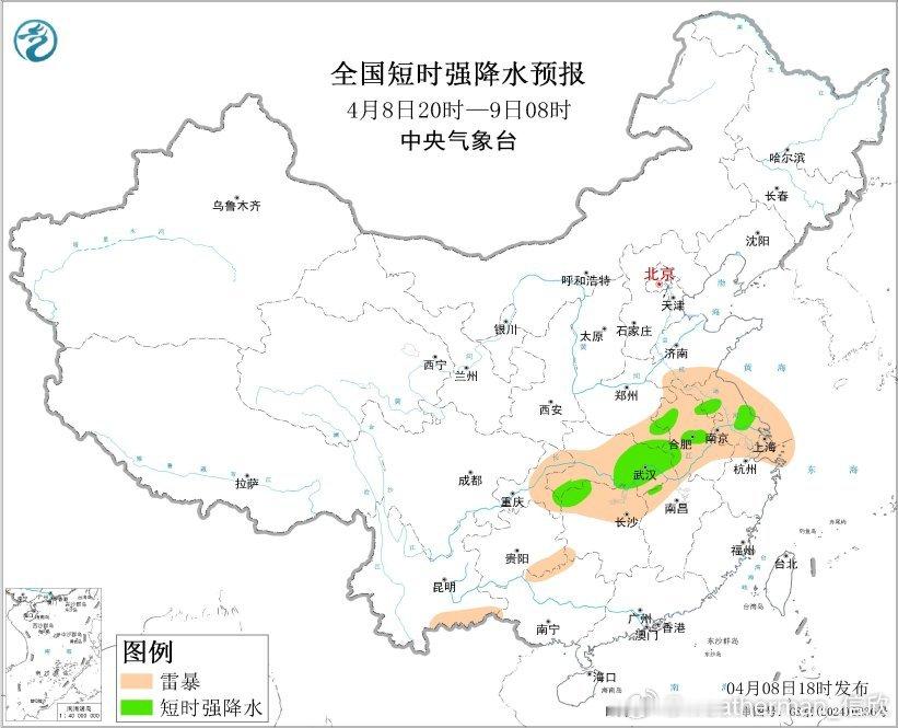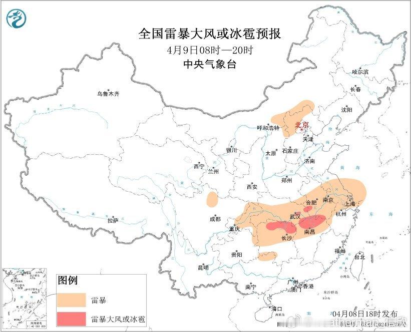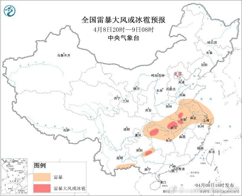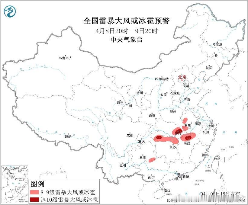 今晚中央气象台继续发布强对流天气黄色预警:预计4月8日20时至9日20时,江汉、江淮西部、江南北部等地的部分地区将有8级以上雷暴大风或冰雹天气,其中,湖北东部和南部、湖南西北部、江西北部等地的部分地区将有10级以上雷暴大风,最大风力可达11级以上,局地不排除出现龙卷的可能性;