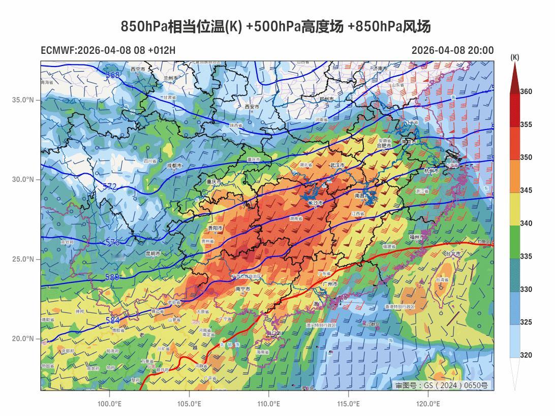 【强对流】今晚到明天,强对流的重点区域在长江中下游一带。尽管目前夏季风尚未爆发,但低空假相当位温可达340-350K(图1中,黄橙色区),大气湿热不稳定,存在较高对流能量,并且夜间低空急流加强,在急流附近和左前侧,水汽充沛且有减速辐合,容易形成短时强降雨,叠加高空槽东移,中层干冷平流,还可能导致雷暴大风或冰雹。