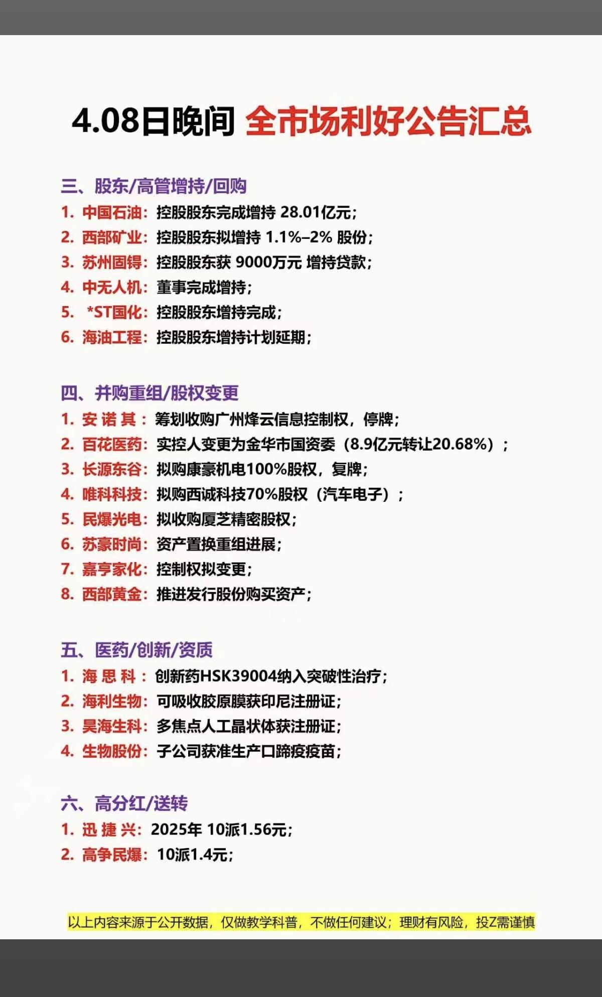 4.9周四 上市公司公告精选汇总!