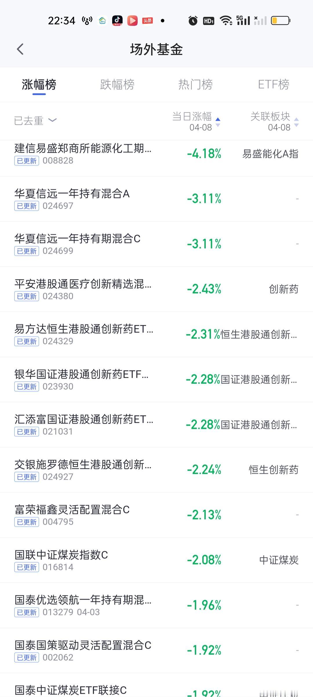 涨幅榜方面,东方创新成长涨11.10%排名第一,金信核心竞争力10.70%排名第二,汇安均衡成长9.98%排名第三,东方阿尔法精选9.87%排名第四,德邦稳盈9.23%排名第五,涨幅在9%以上的还有信澳景气优选9.22%,中海进取收益9.21%,富国创业板人工智能9.20%,信澳匠心甄选两年持有期9.08%,华夏创业板人工智能9.02%,南方创业板人工智能9.01%。