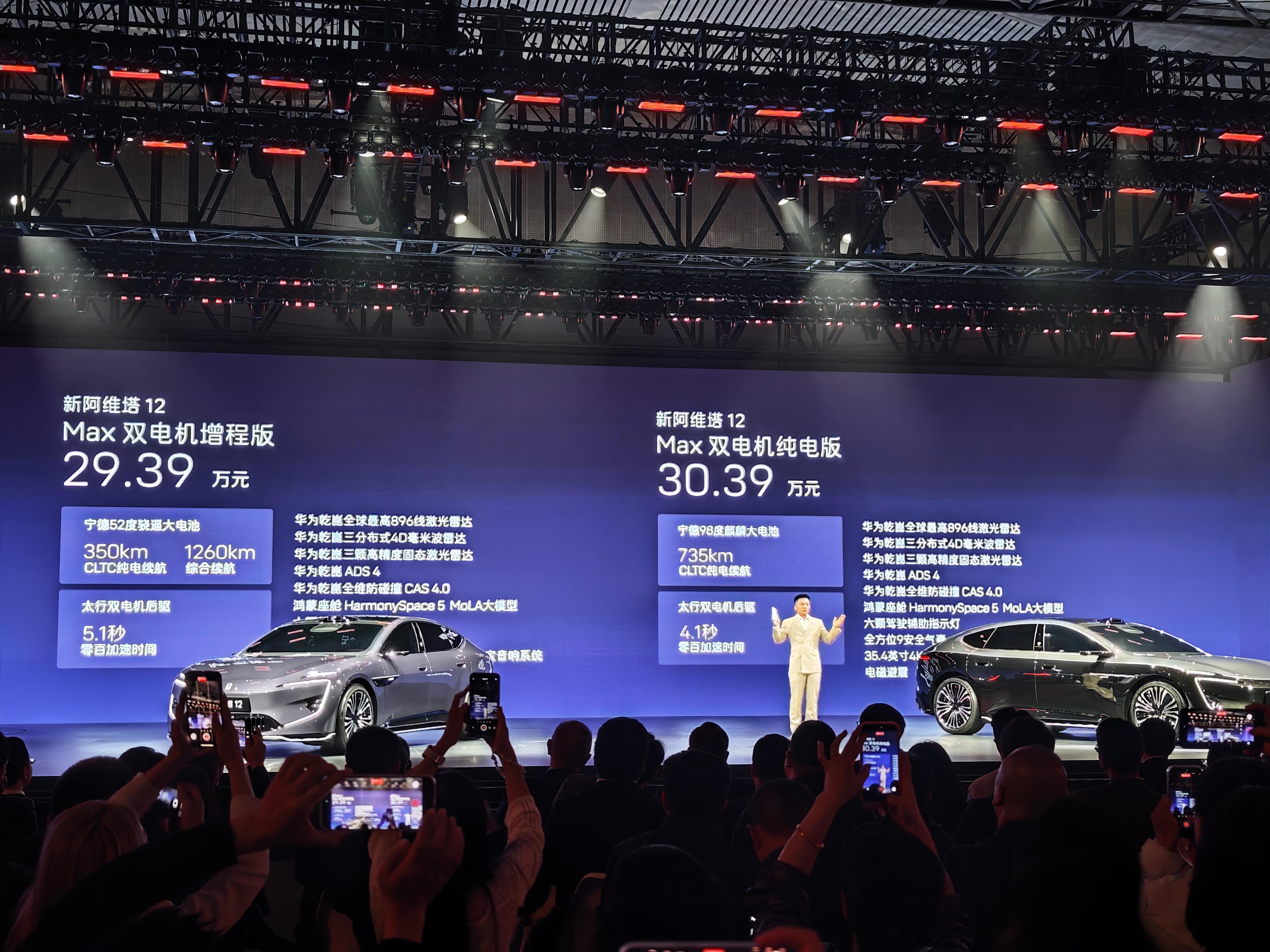 新款阿维塔12上市,纯电/增程双动力合共7款车型,指导价29.39万起售,限时可享1万元购置税兜底等权益。