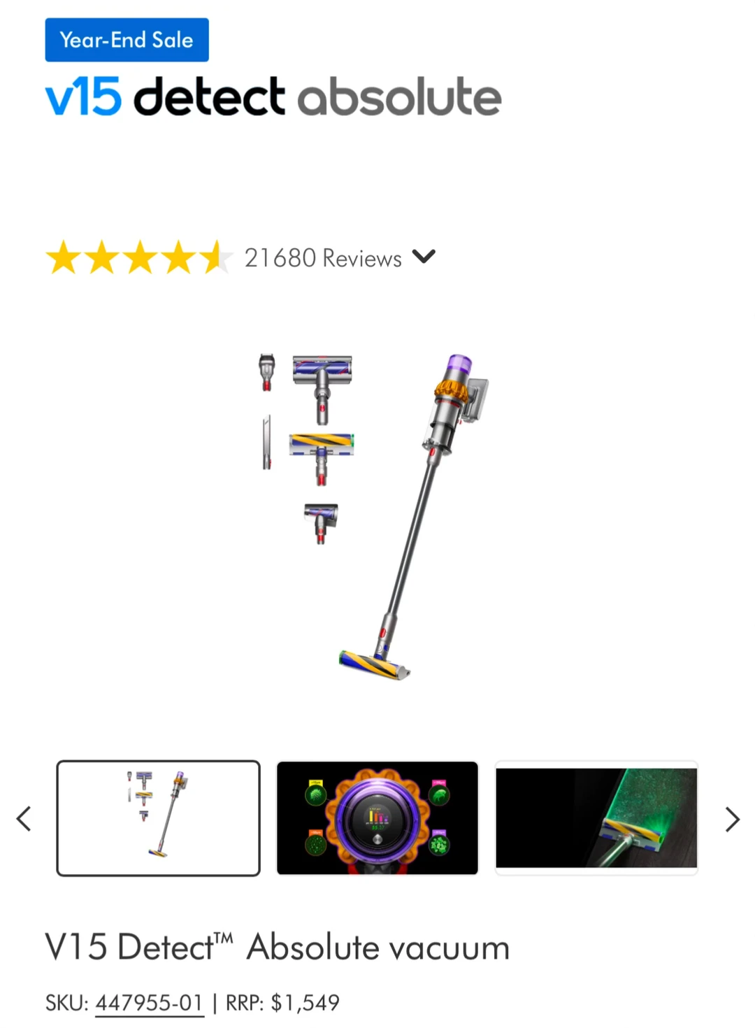 Dyson年末大促[哇R][哇R]V15 Detect Absolute这吸尘器,原价1549,现在直接降到998,已经是很香的折扣了✅现在还挖到了一个隐藏优惠‼️00WC1L8J