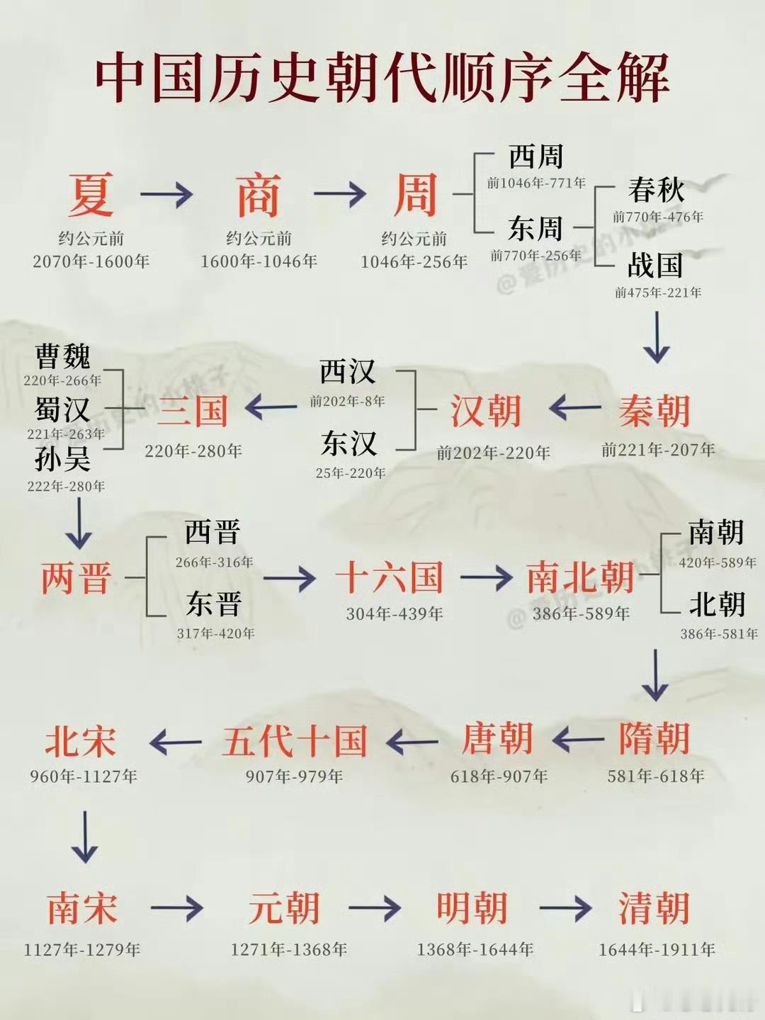 中国历史朝代顺序表,不记得可以好好补补了。