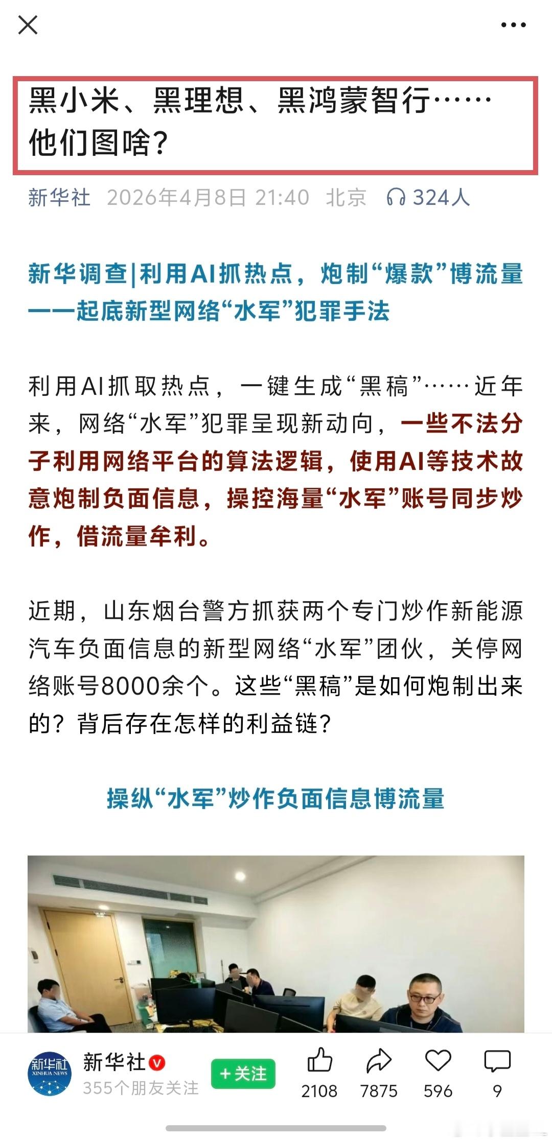 小米等车企遭AI造谣抹黑刷了一圈热搜,怎么都没怎么提鸿蒙智行?同样是被AI造谣抹