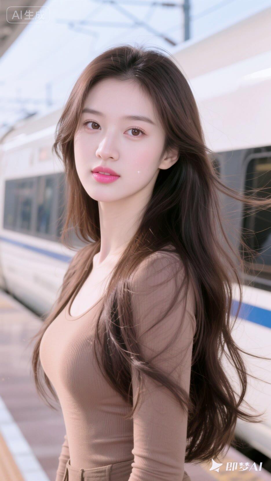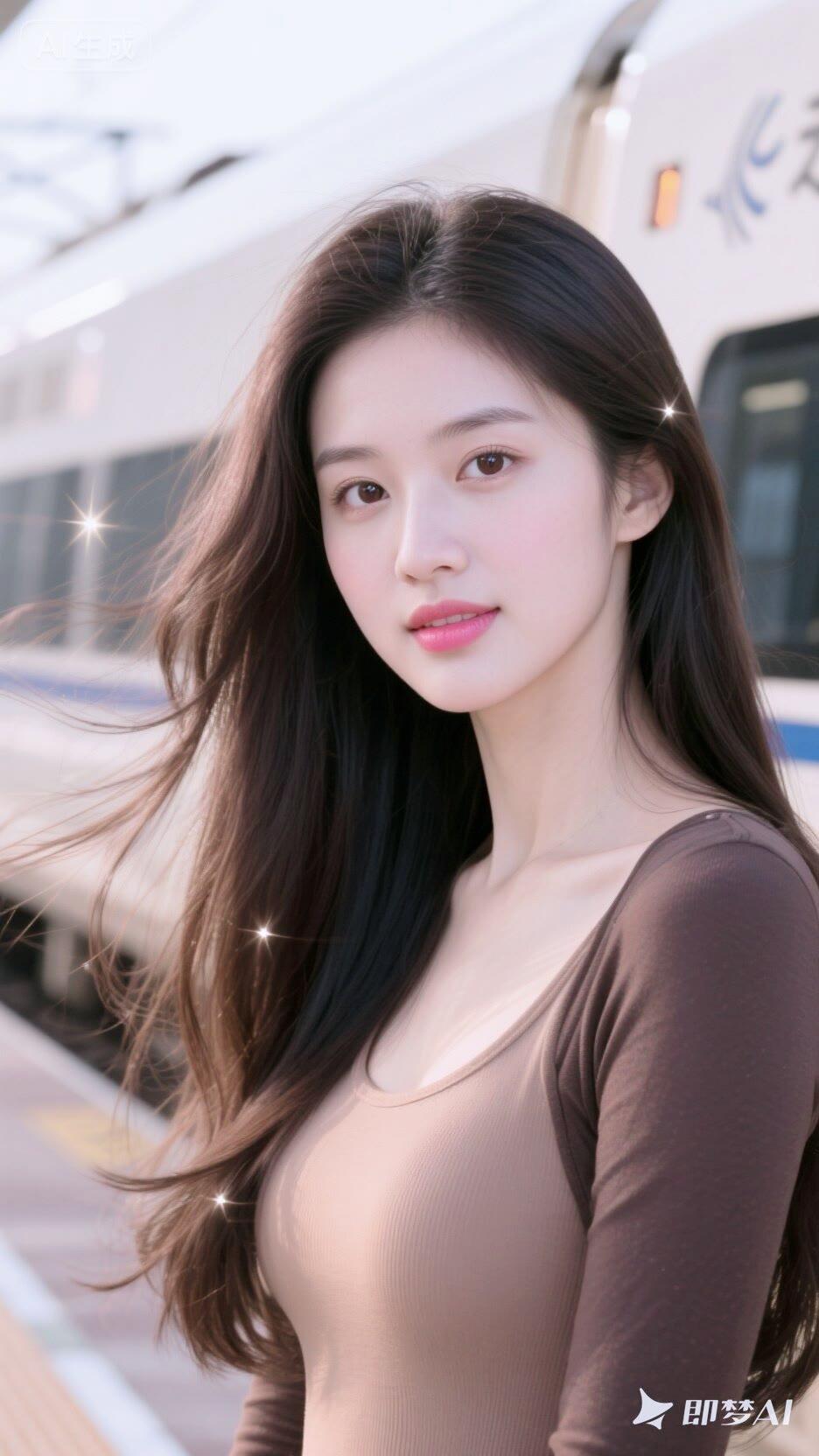 在阳光下的温柔瞬间,少女与火车的邂逅