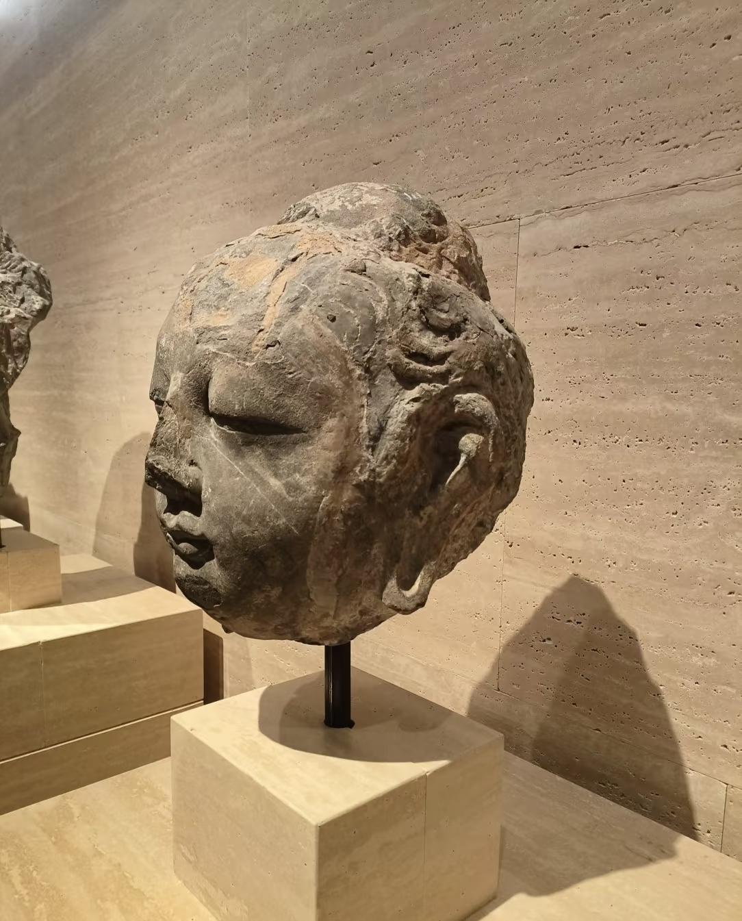 去了龙门石窟,全是残破的,然后就在上博看到这颗佛头,太美了,第一次触目惊心地感受到龙门石窟的破坏[流泪]