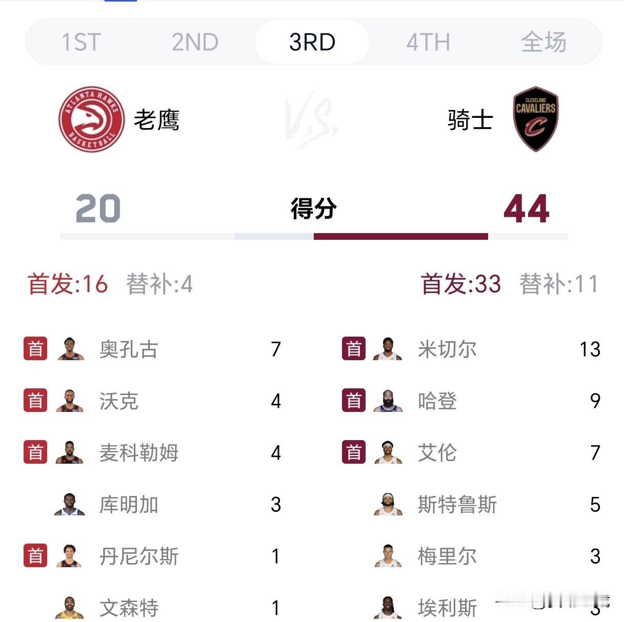 哈登打样儿,米切尔领军,骑士压哨三分人传人,第三节狂飙44分打花了老鹰🦅[震惊][震惊][震惊]